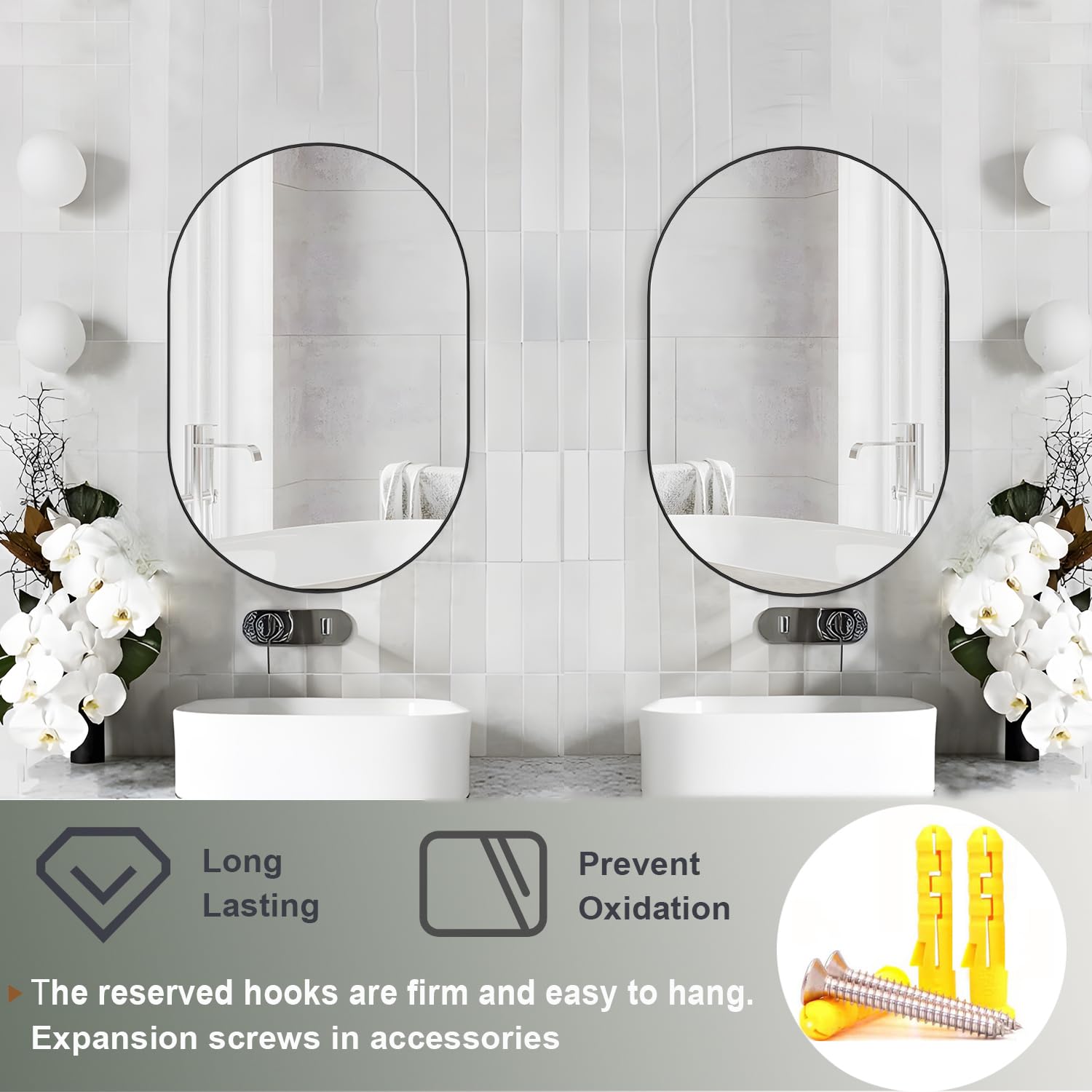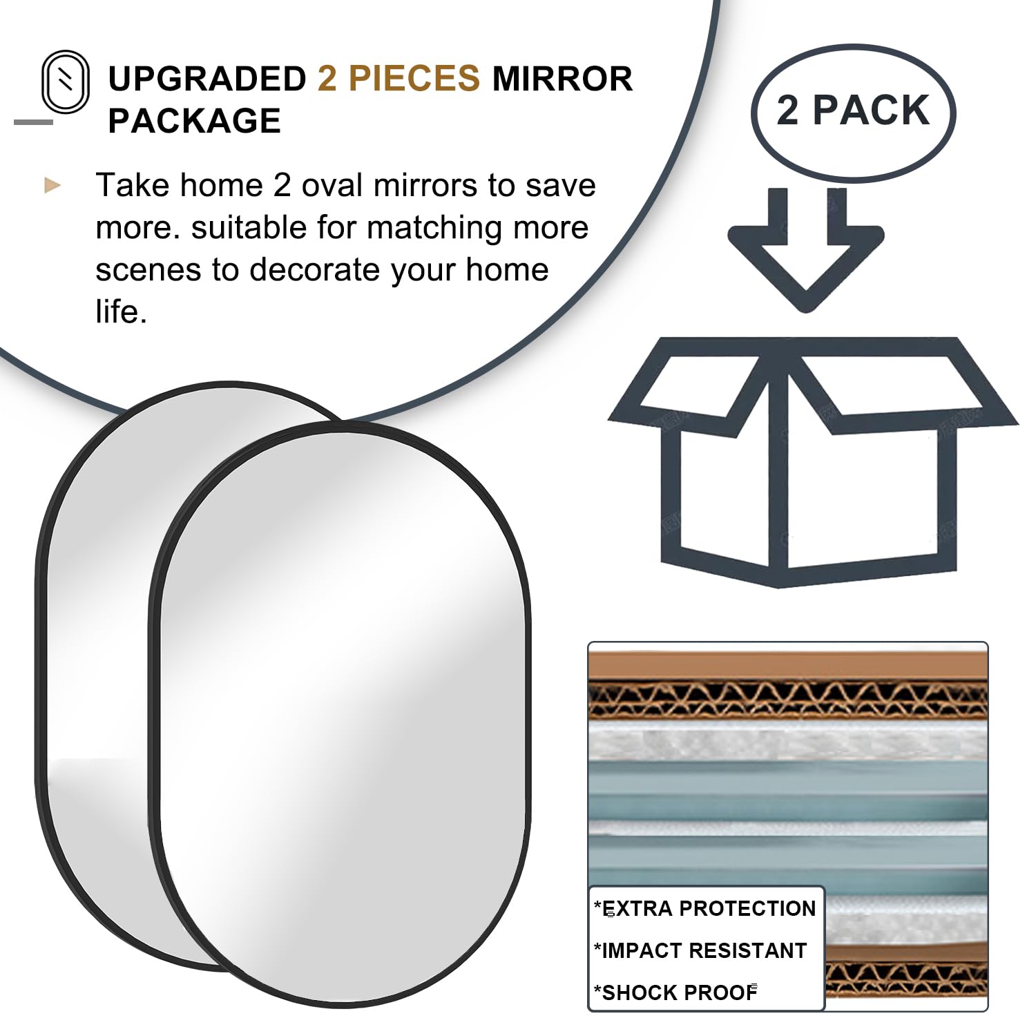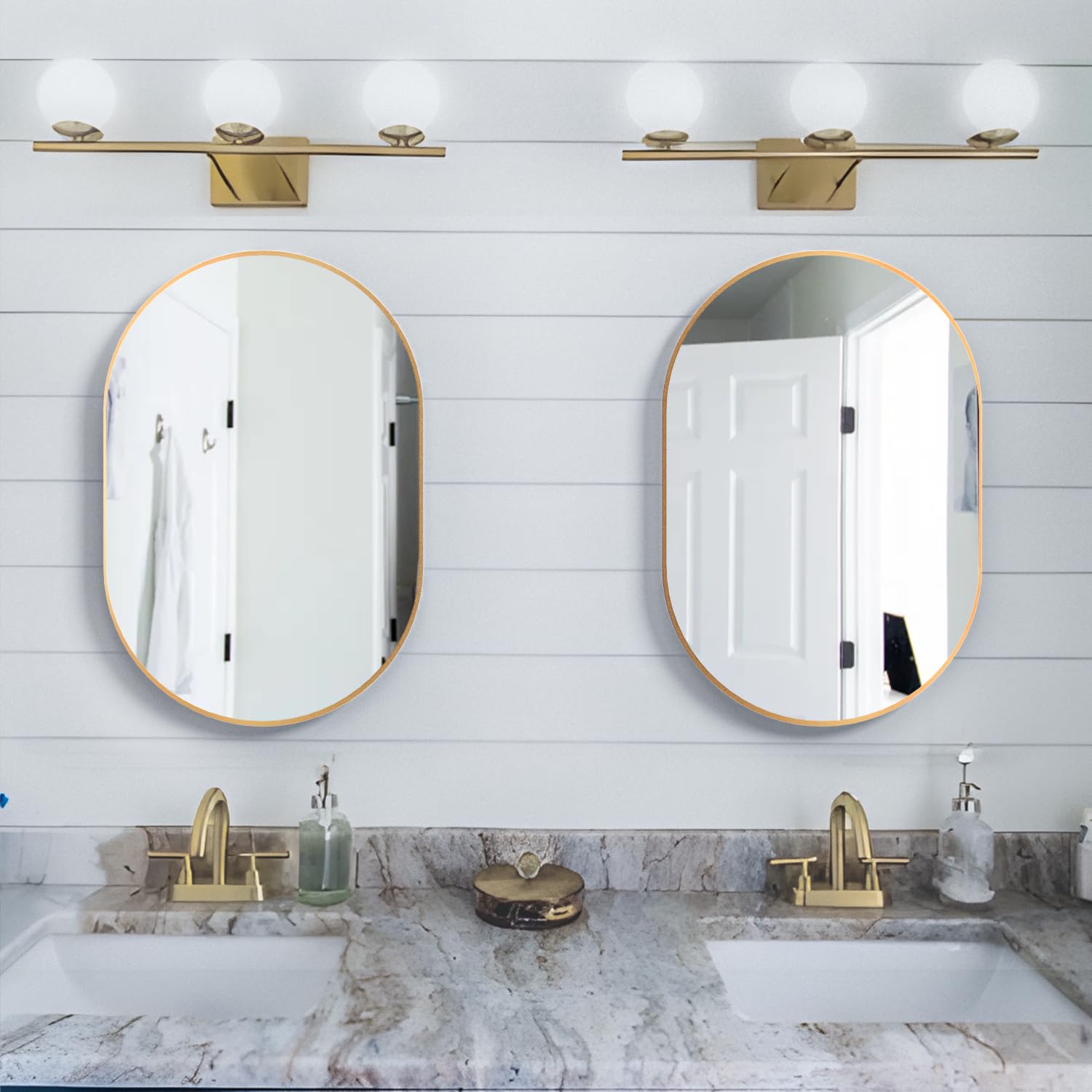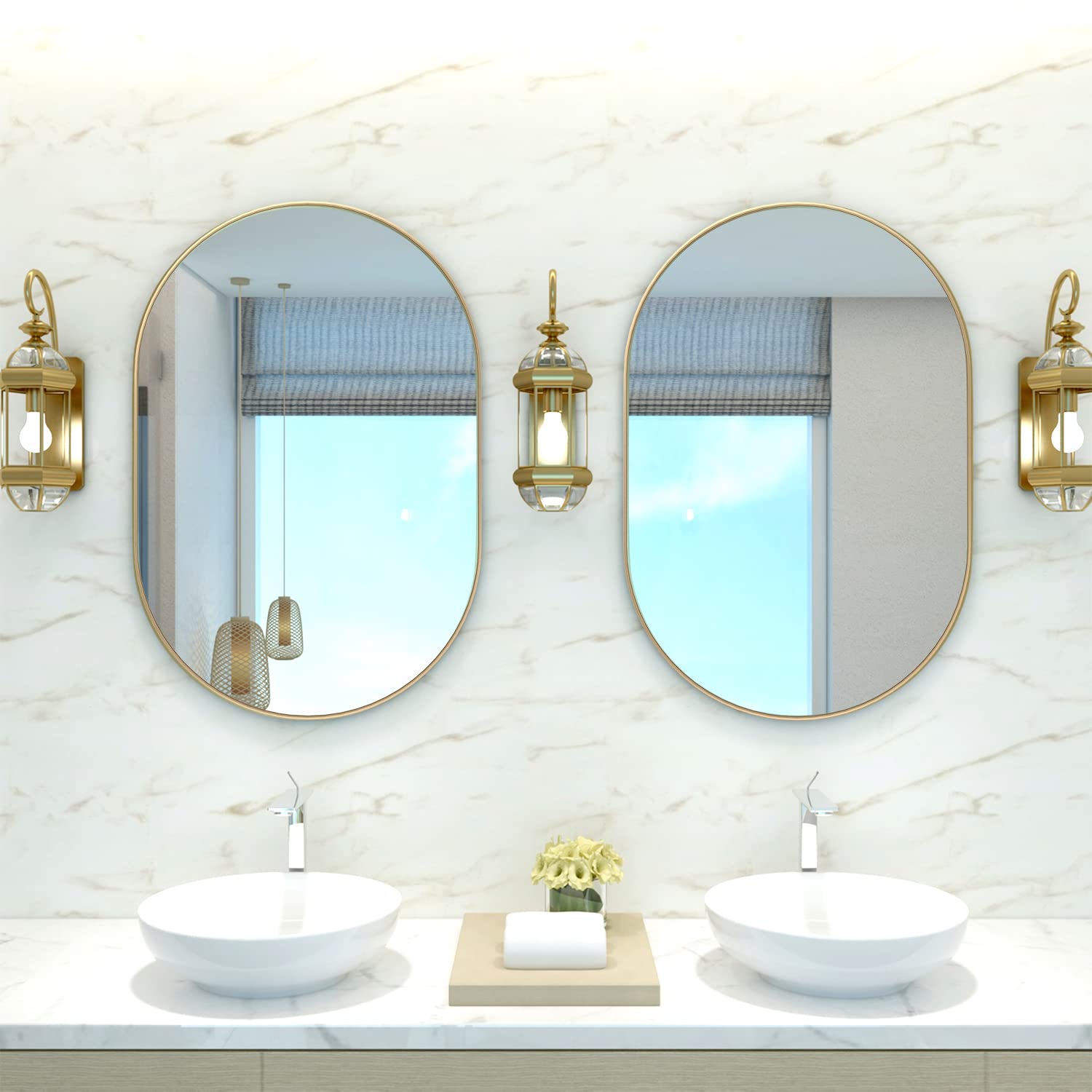NEUWEABY Ovaler Badezimmerspiegel, Kapsel, Wandspiegel, 2 Stück, 50.8x76.2 cm, Pillenspiegel, Wandmontage, grosser moderner Spiegel mit goldfarbenem Metallrahmen, Schlafzimmer, Wohnzimmer