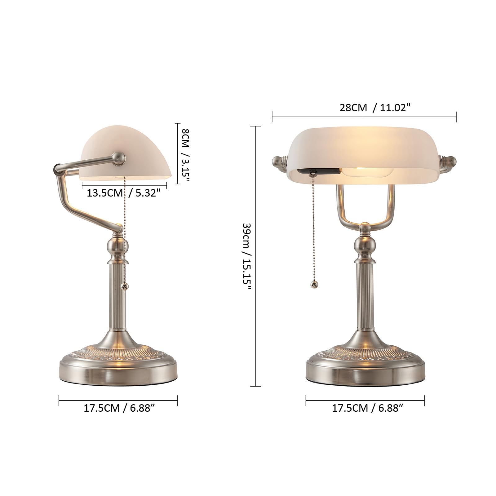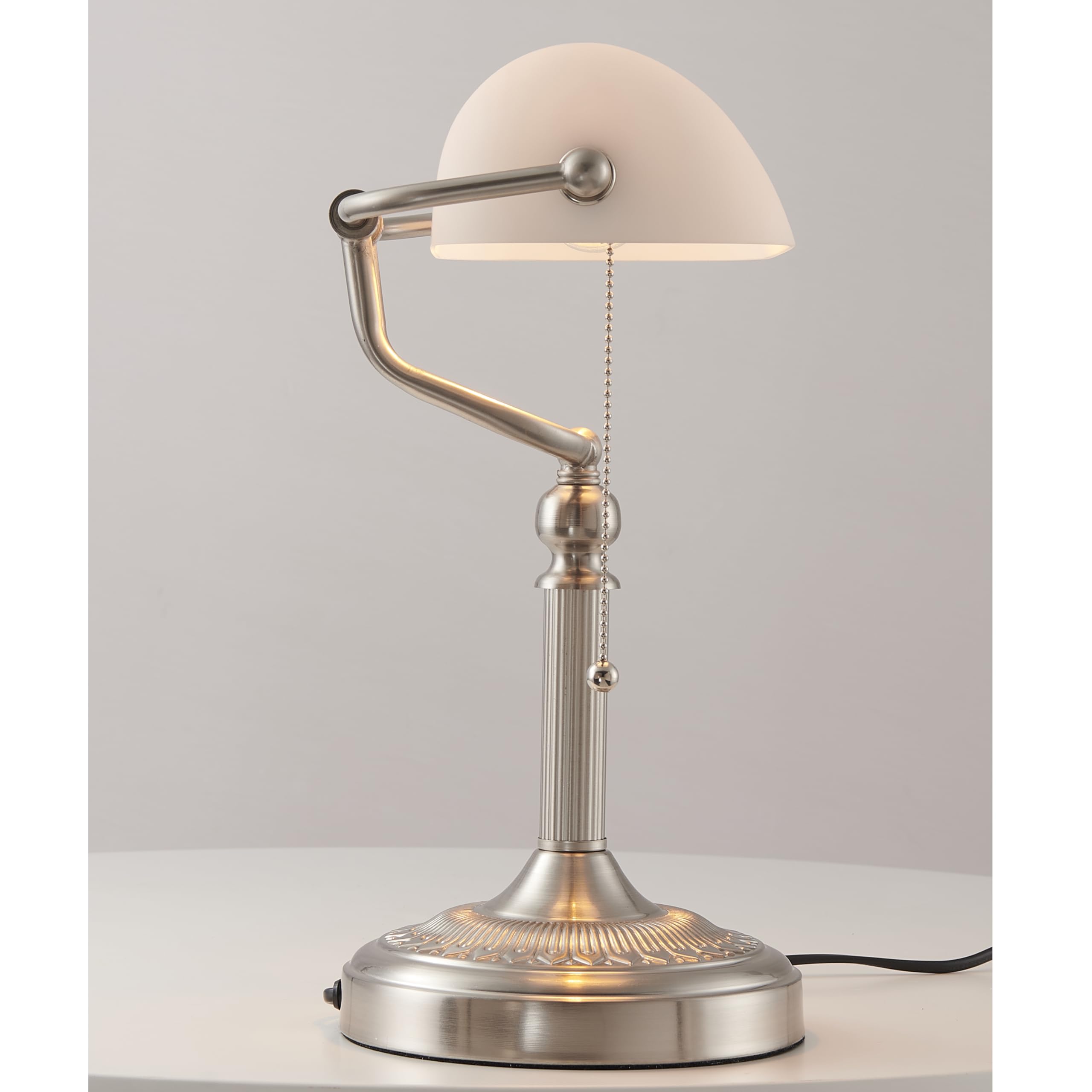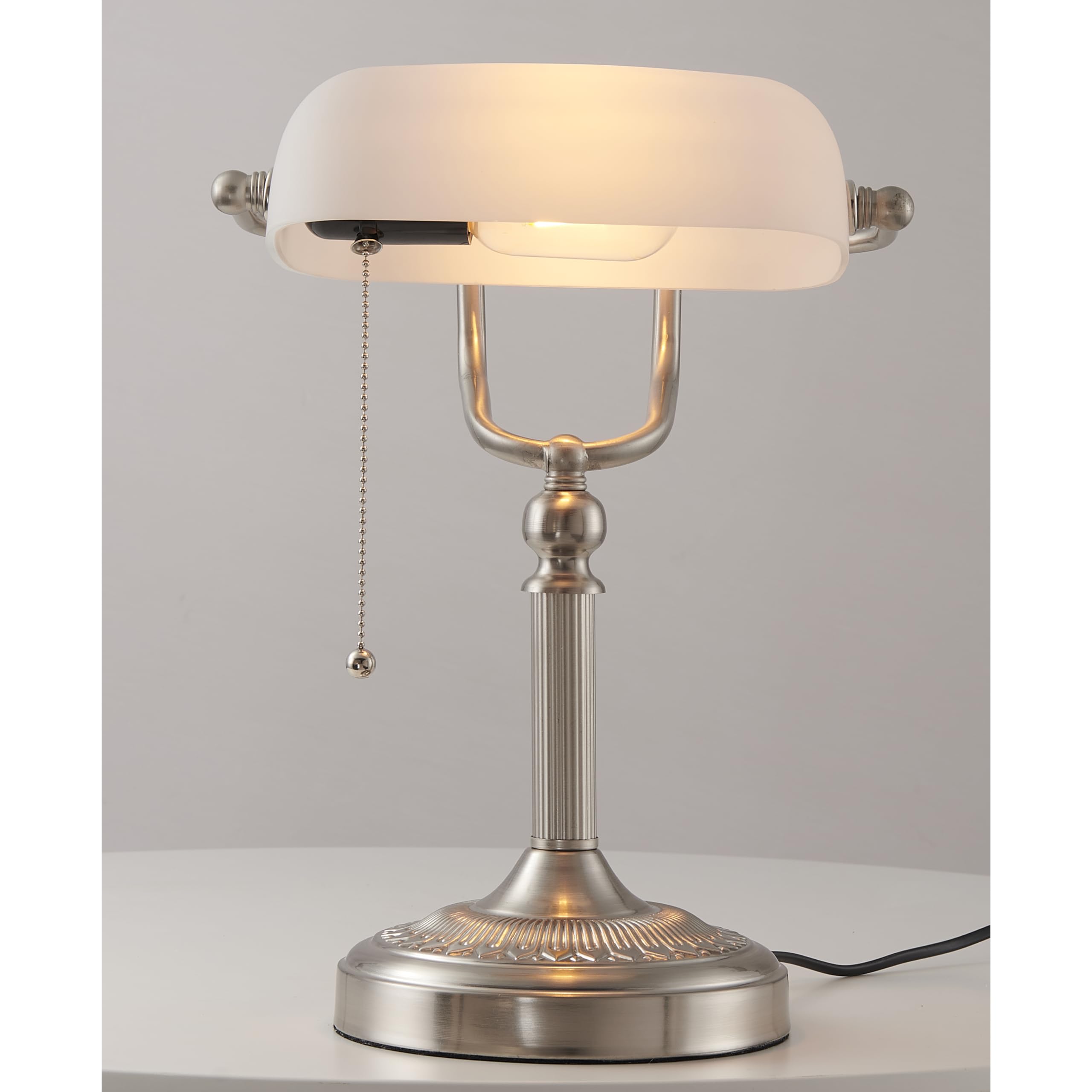 Newrays White Glass Bankers Schreibtischlampe mit Pull Chain Switch Plug-In-Halterung
