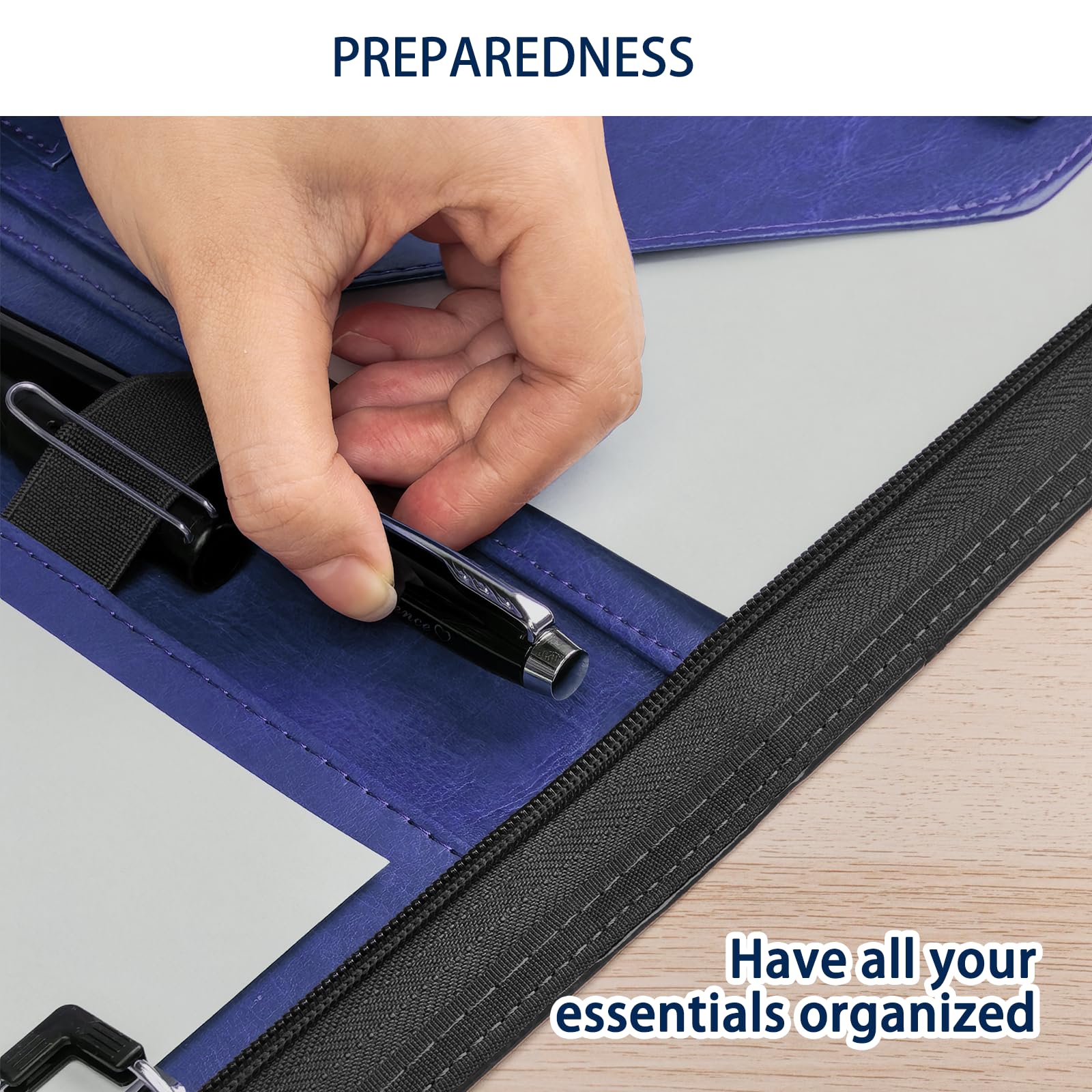 NEWYES PU Ledermappe mit Reissverschluss, Dokumentenmappe zum Reisen A4, Organizer Büro Mappe, Konferenzmappe, Saphirblau