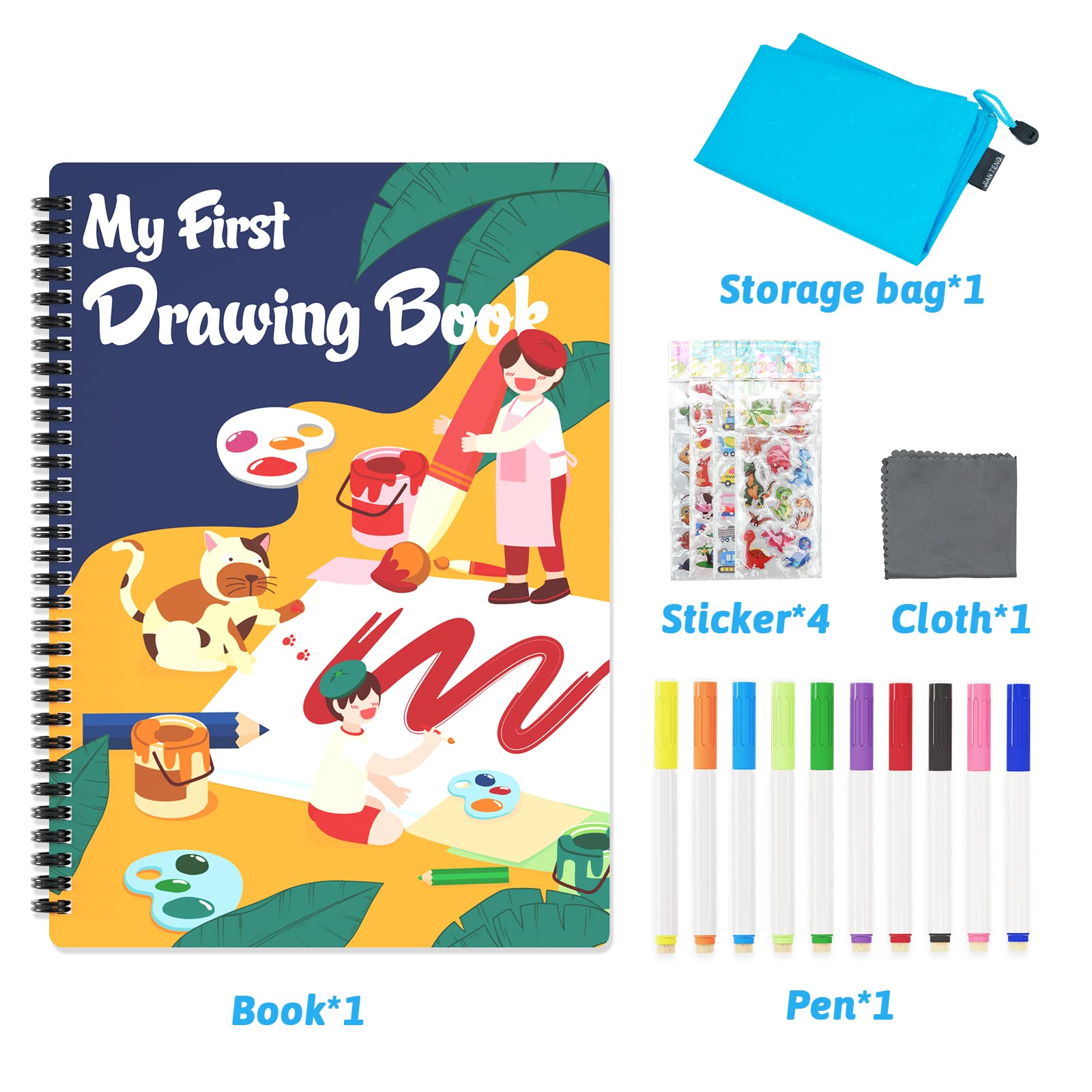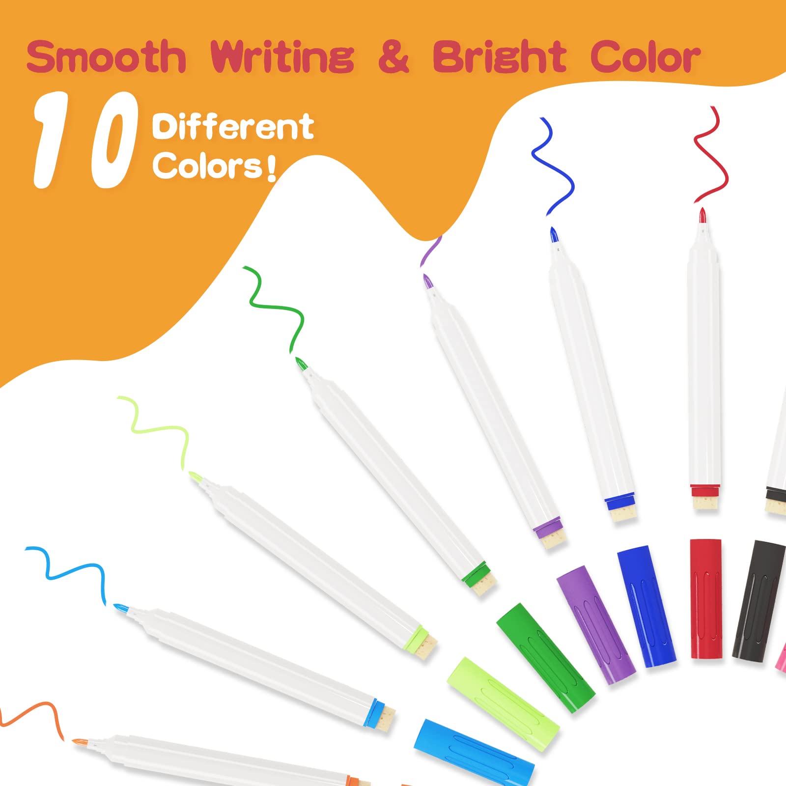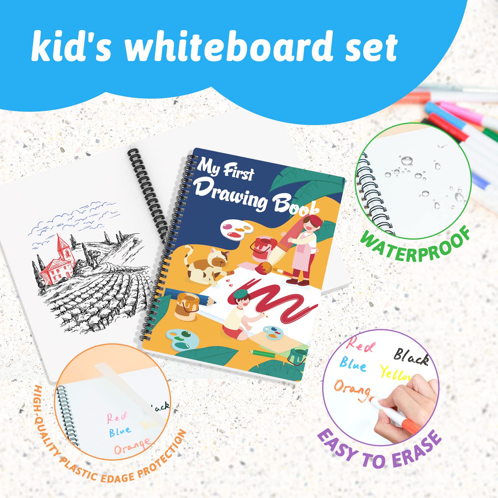 NEWYES Kinder Whiteboard Set Wiederverwendbares trocken löschbares Zeichenbuch mit 10 Markern, 3 4 5 6 7 8 Jahre alt Jungen & Mädchen Lernspielzeug löschbares Kritzelebuch zum Zeichnen, Kritzeln