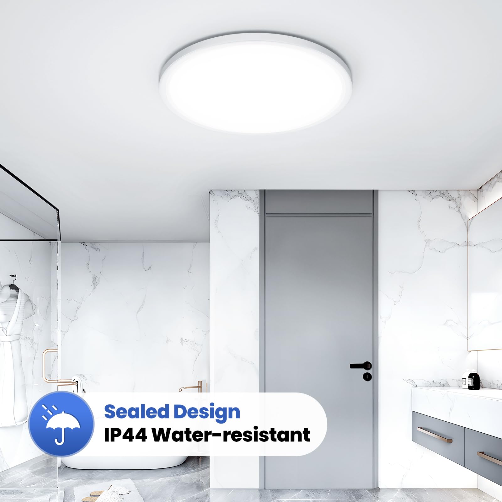 NIBSHOOM Deckenlampe LED Deckenleuchte Rund Flach 6500K,24W/2400LM/IP44 Wasserfest Ultradünn Badezimmer Lampe Decke, Modern Schlicht deckenlampen für Schlafzimmer Wohnzimmer Flur Küche Büro,300*17mm