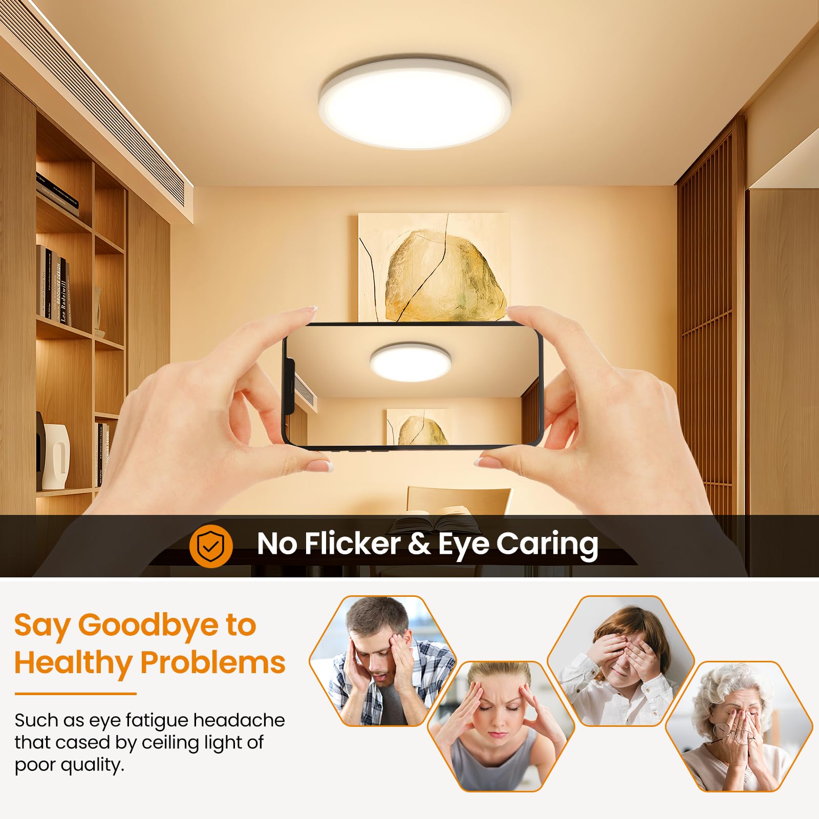 NIBSHOOM Deckenlampe LED Deckenleuchte Rund Flach 3000K,18W/1800LM/IP44 Wasserfest Ultradünn Badezimmer Lampe Decke, Modern Schlicht deckenlampen für Schlafzimmer Wohnzimmer Flur Küche Büro,220*17mm