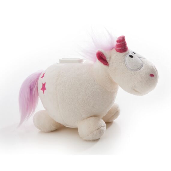 Einhorn Theodor als figürliche Spardose passt auf dein Geld auf. Über einen Schlitz am Rücken füttert man ihn mit Geldscheinen und Münzen; ein Schraubverschluss am Bauch gibt das Gesparte wieder frei.
