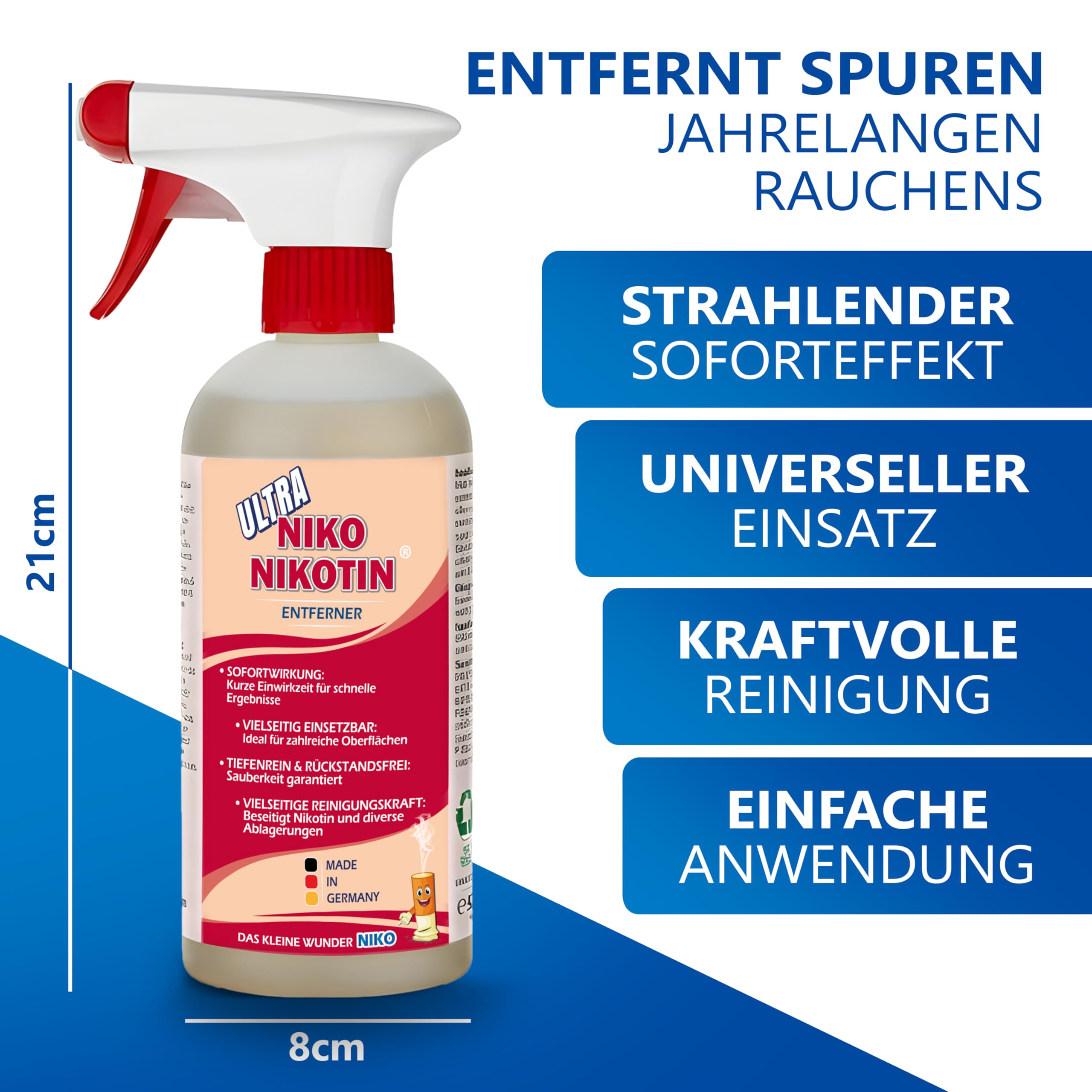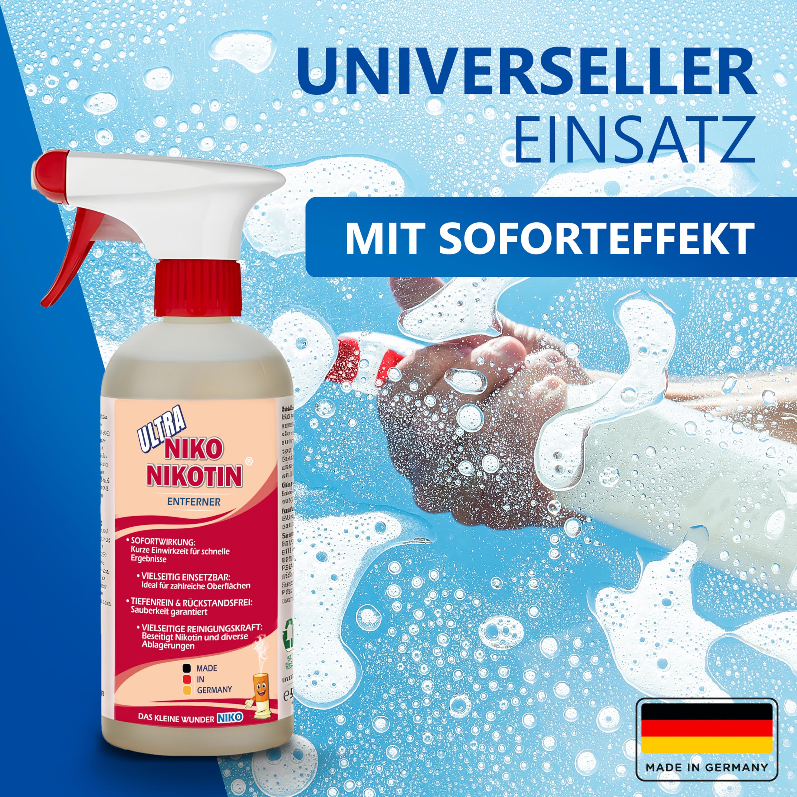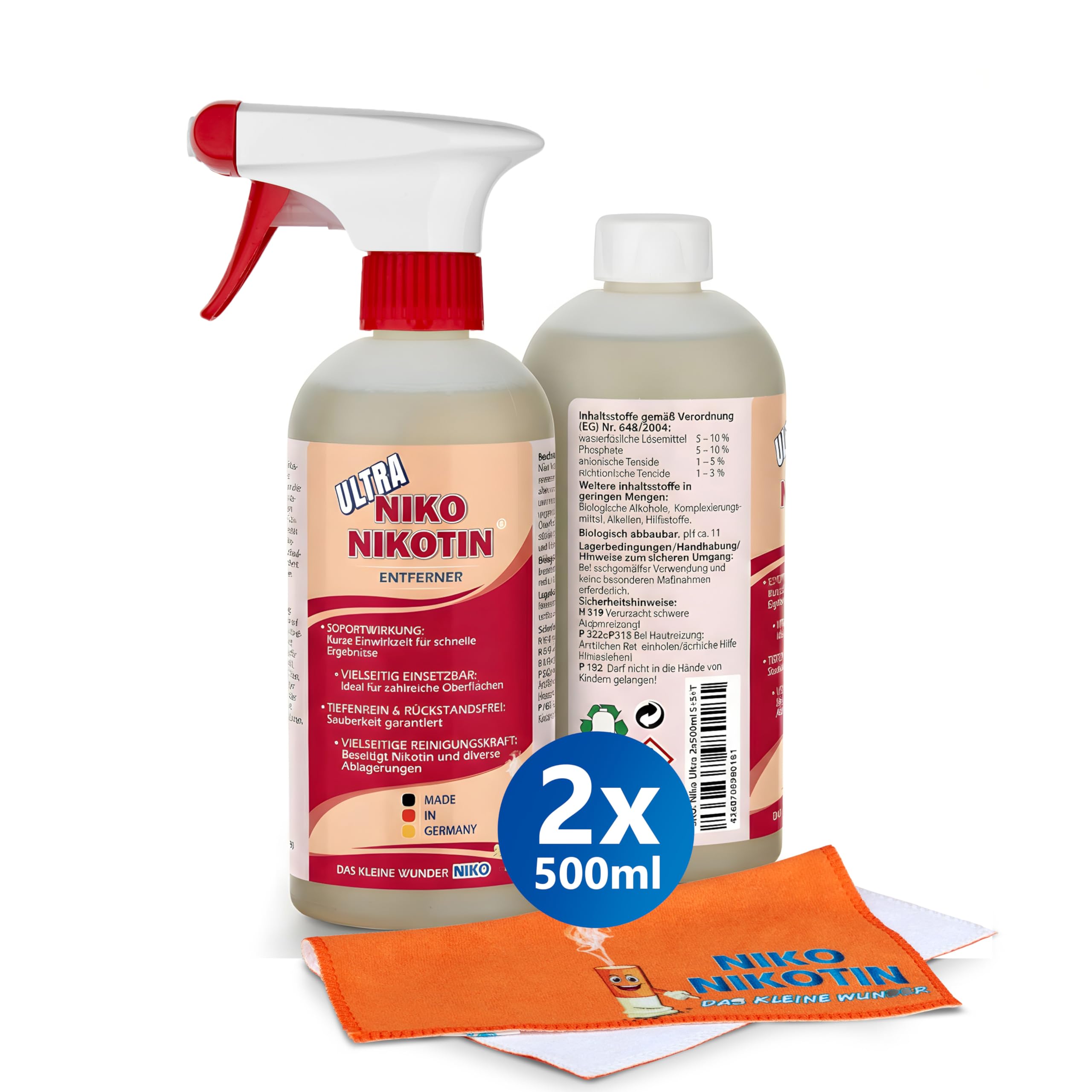 NIKO Nikotin Ultra Profi-Entferner, verbesserte Rezeptur, 2x500ml mit Reinigungstuch, gegen Nikotin & Vergilbung