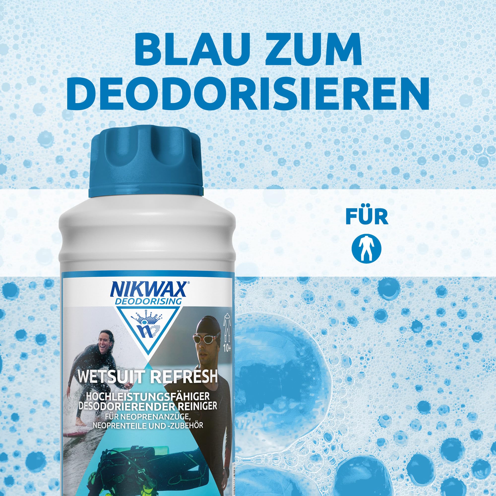 Die effektive Reinigungsformel von Wetsuit Refresh ist nicht biologisch, biozidfrei und schadet den Wasserlebewesen nicht, was bedeutet, dass es sanft zu Ihrer Haut und der Umwelt ist. Nikwax engagiert sich für den Schutz unserer Umwelt für alle Outdoor-Enthusiasten und die nächste Generation von Outdoor-Abenteurern. Wir gehen über die bewährten Praktiken der Branche hinaus, um sicherzustellen, dass unsere Produkte weiterhin sicherer für Menschen und unseren Planeten sind. Wir haben noch nie PFAS oder Aerosol-Treibmittel in unseren Produkten verwendet und unsere Flaschen und Verschlüsse sind aus 100% recyceltem und recycelbarem Kunststoff. So verwenden Sie den Nikwax Neoprenanzug Refresh von Hand WICHTIG: Vor Gebrauch gut schütteln. Nicht im Meer oder im offenen Wasser verwenden. Handwäsche (Handschuhe verwenden): 1. 100 ml Neoprenanzug Refresh in 20 l kaltes Wasser geben und mixwell. 2. Artikel eintauchen. 3. Waschen Sie den Artikel und lassen Sie ihn 5 Minuten einweichen. Afinale Zeit bewegen. 4. Gründlich mit klarem Wasser ausspülen. Trocknen: Trocknen Sie gemäss den Anweisungen des Kleidungsstücks.