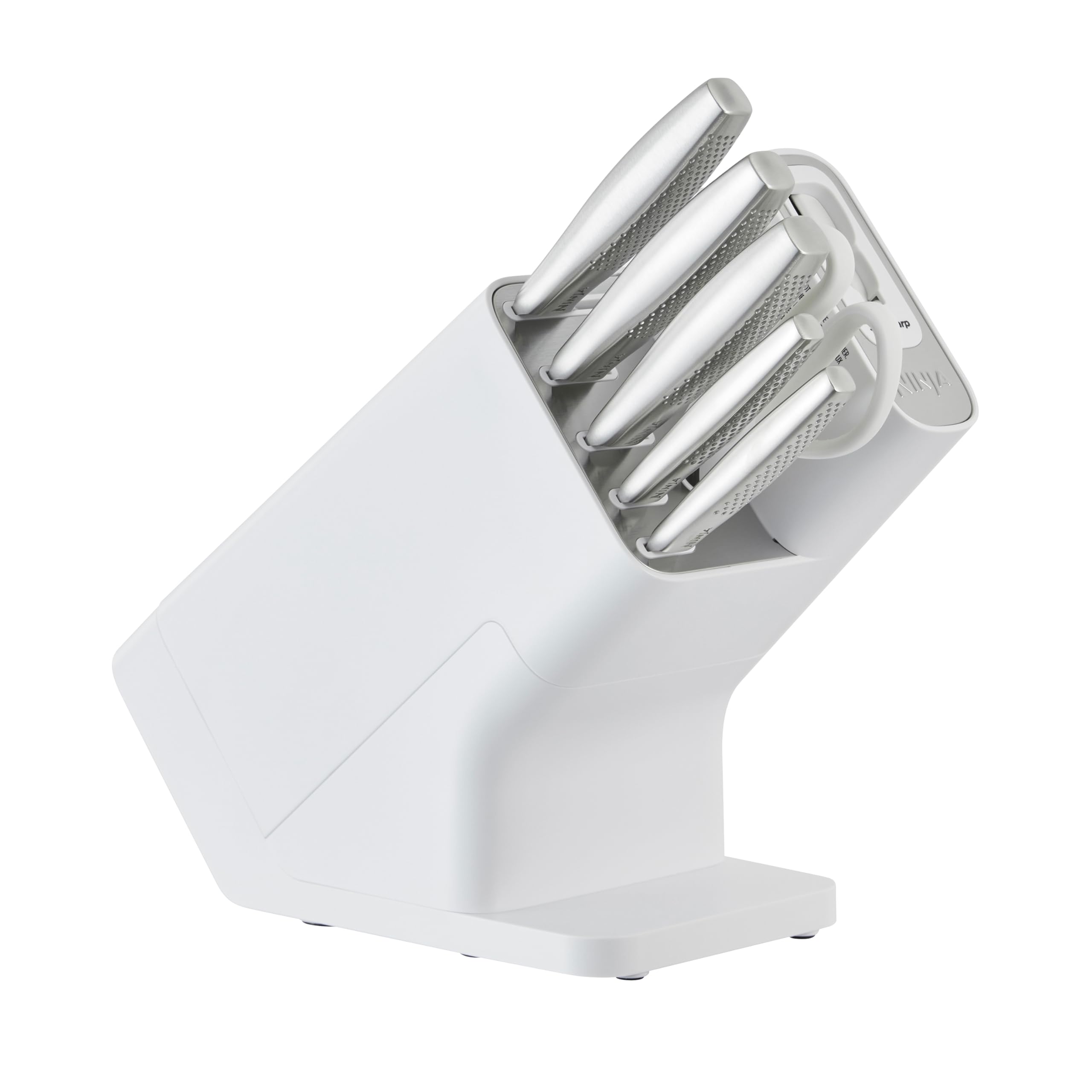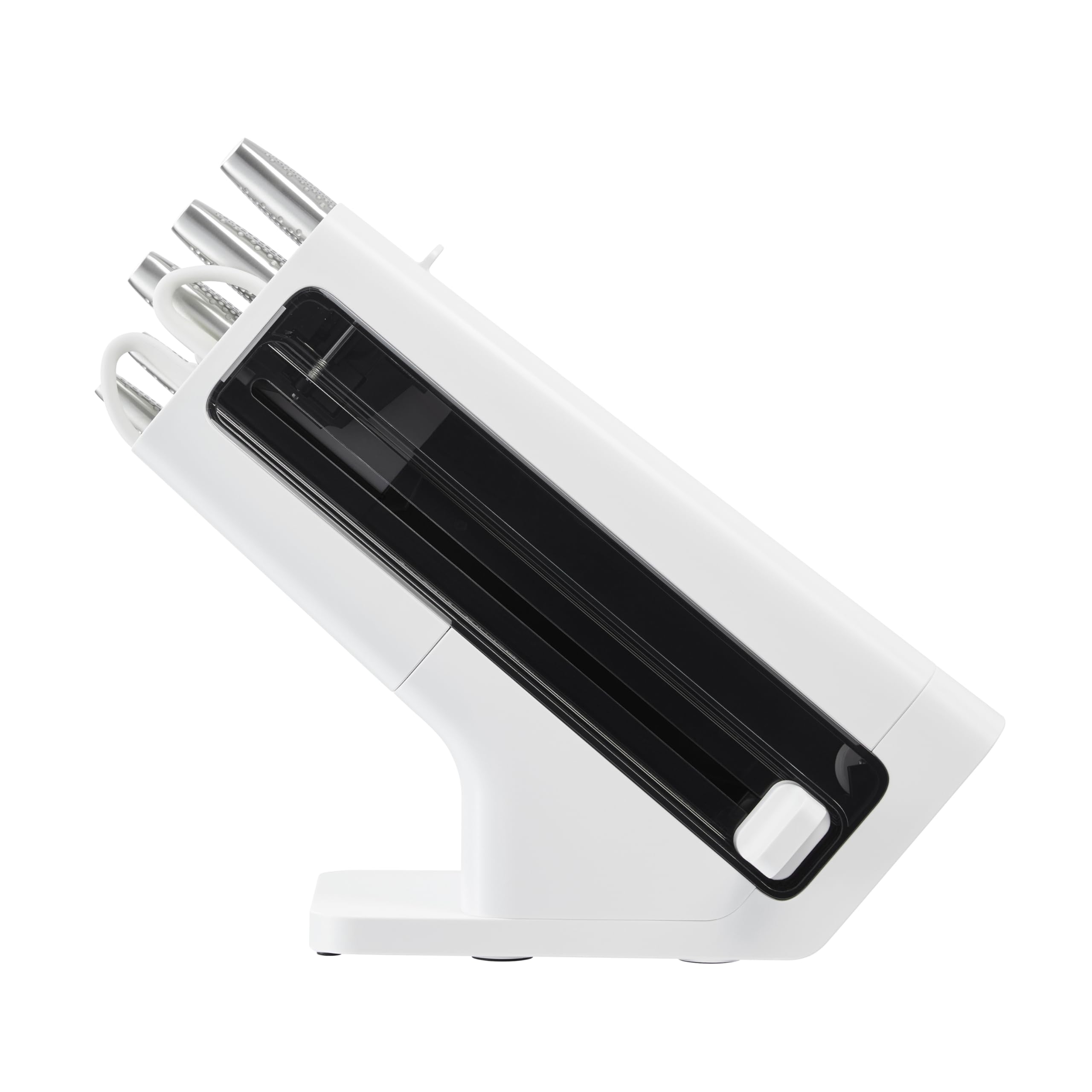 Entdecke hochwertige Haltbarkeit, von Köchen inspirierte Qualität und jahrelang verlässliche Leistung für deine Küche. Dieses Edelstahlset aus deutschem X50CrMov15 rostfreiem Edelstahl überzeugt durch Präzisionsklingen, die in jeder Küche unentbehrlich sind. Untergebracht in einem eleganten weissem Messerblock, fügt sich diese Messerset nahtlos in deine Küche.Damit sie immer bestens aussehen und schneiden, ist im Messerblock ein Keramik-Schleifrad integriert. Wenige Hebelgriffe genügen, um stumpfe Messer wieder zu schärfen. Bei empfohlenem Schärfen bleiben sie 10 Jahre* lang scharf – eine Investition, die sich für alle ambitionierten Köche lohnt. (*Bei Verwendung des StaySharp Messerschärfers. Nach Registrierung bei Ninja.) Dieses 6-teilige Messerset beinhaltet: 20 cm Kochmesser, 20 cm Fleischmesser, 20 cm Brotmesser, 13 cm Universalmesser, 9 cm Gemüsemesser, Küchen- und Kräuterschere. Einfach gut essen.