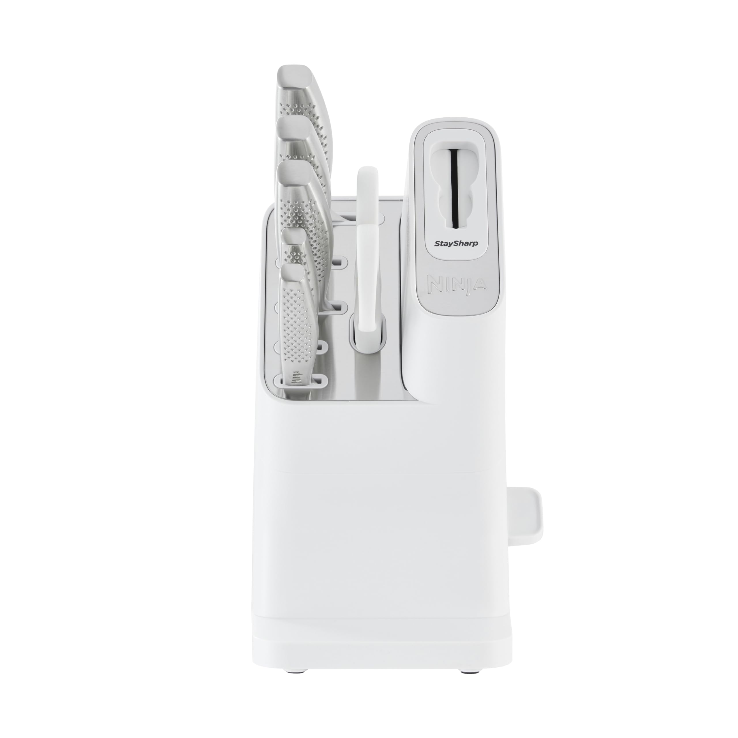 Ninja StaySharp Messerset, Edelstahl 6-teiliges Messerset mit integriertem Messerschärfer, mit Küchen- und Kräuterschere, Weiss, K62006EUWH