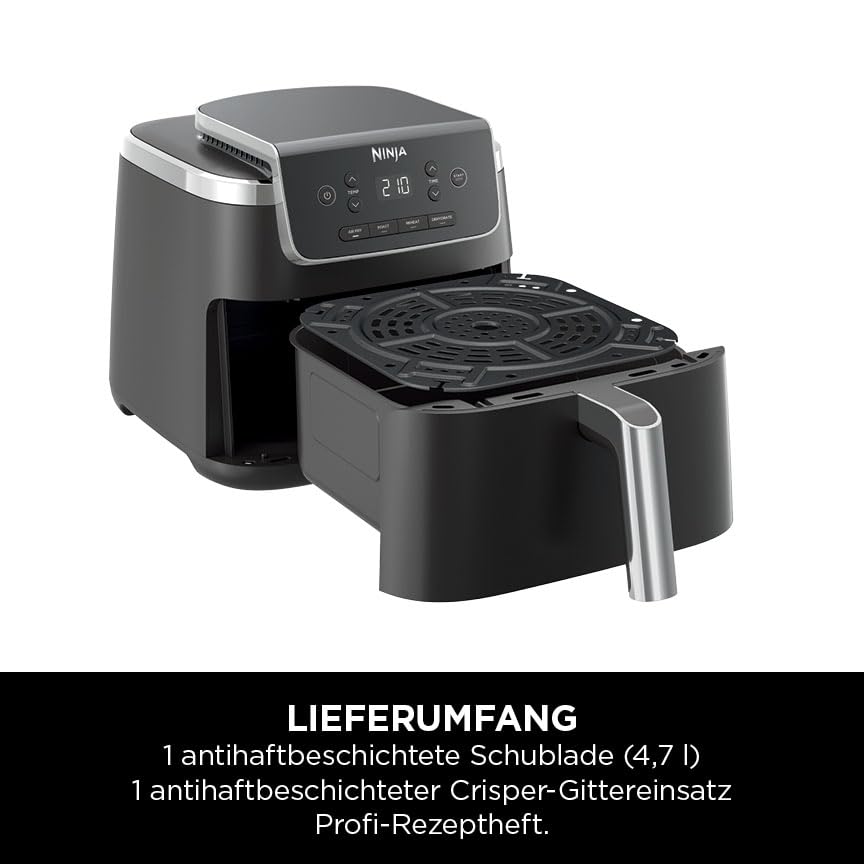 Ninja PRO Air Fryer Heissluftfritteuse, 4,7L Airfryer, Einzelkorb-Heissluftfritteuse, 4-in-1, für 1-2 Portionen, Digital, Kochen aus dem Gefrorenen, Antihaft-Schublade & Crisper Korb, Schwarz AF140EU