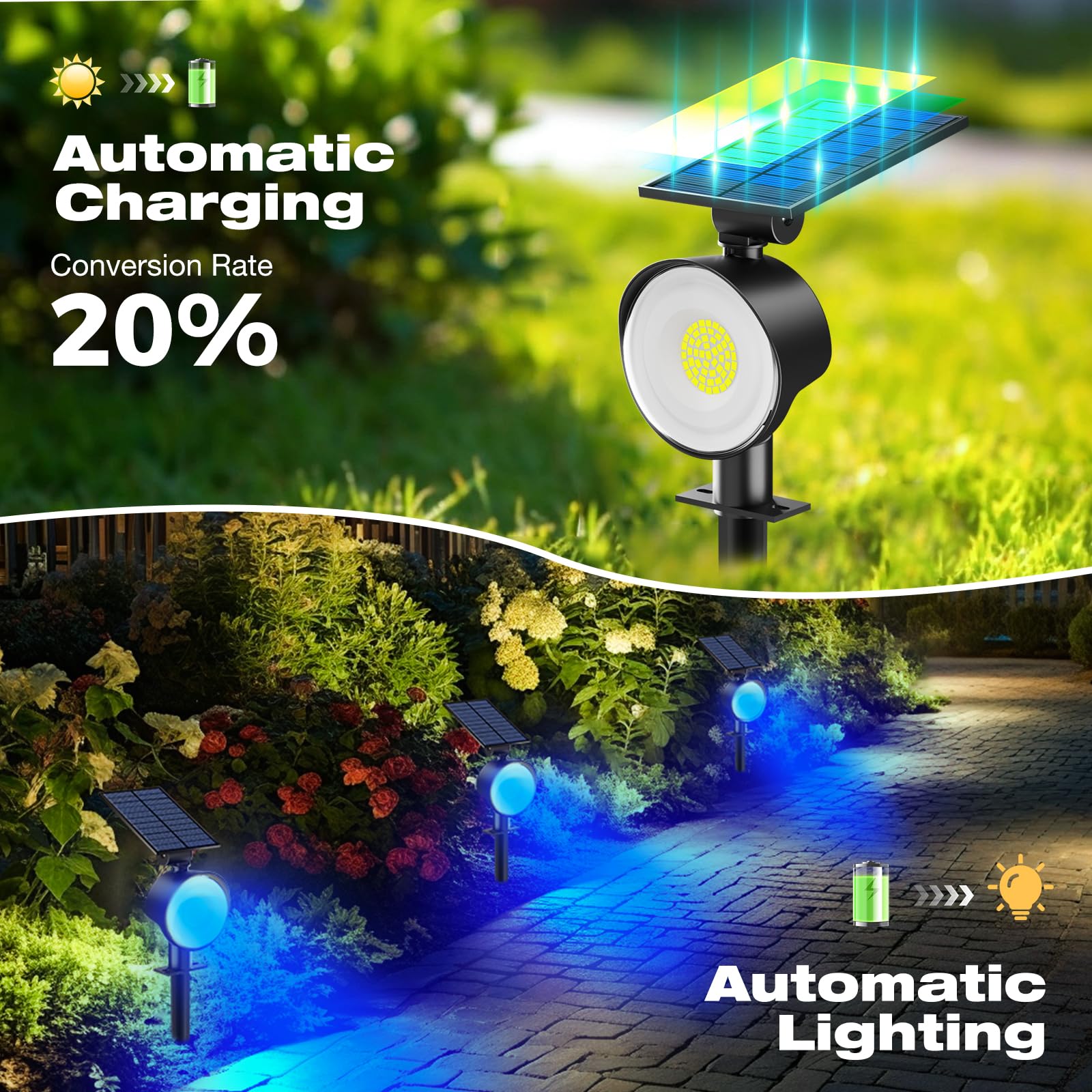 nipify 4 Stück Solarlampen für Aussen Garten, 53 LED Blau Solar Strahler Gartenleuchten IP65 Wasserdicht, 3 Helligkeit Solarleuchte Aussenleuchte Wegeleuchten für Draussen Aussen Wege Outdoor