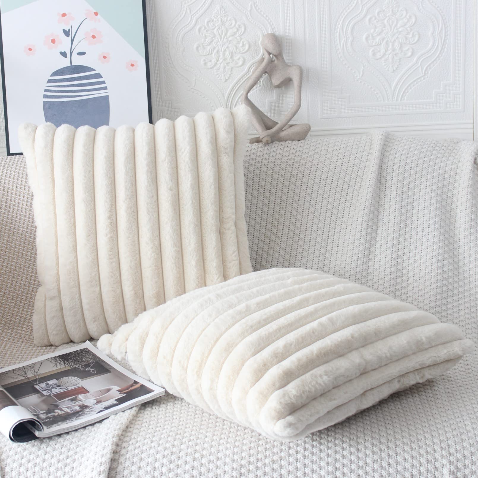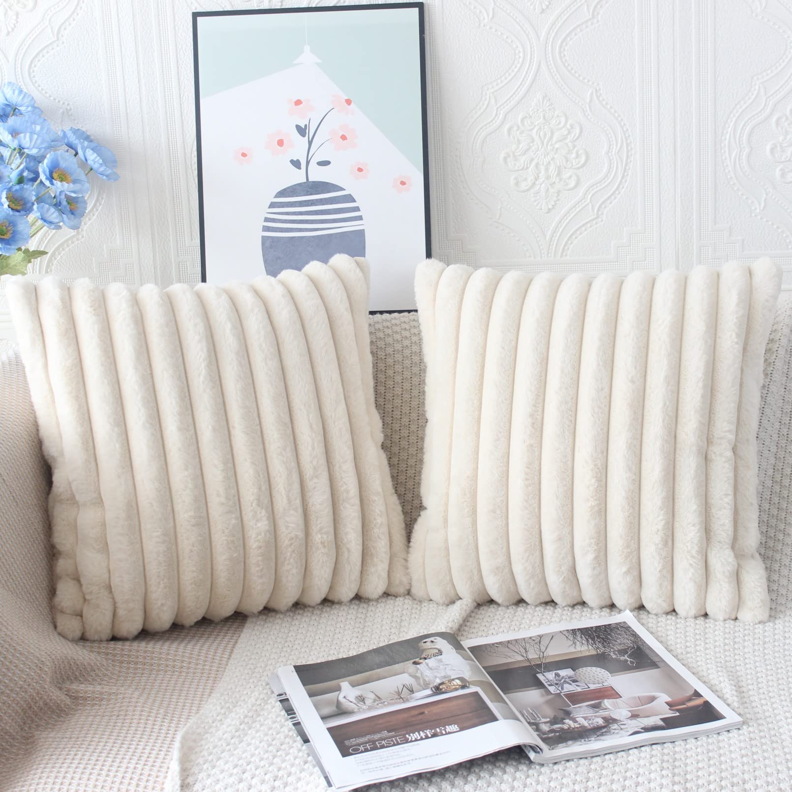 NIULAA Beige Kissenbezug 40x40 2er Set Flauschig Plüsch Deko Kissenbezüge Weich Gestreift Pelz Kissenhülle Dekokissen Sofakissenbezug Luxus Sofakissen Zierkissenbezüge Wohnzimmer Sofa
