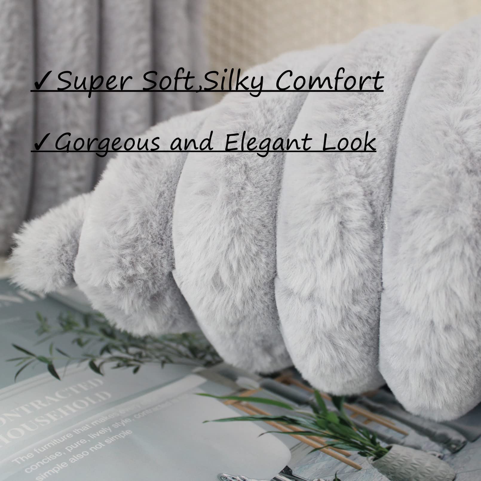 NIULAA Silber Grau Kissenbezug 50x50 2er Set Flauschig Plüsch Deko Kissenbezüge Weich Gestreift Pelz Kissenhülle Dekokissen Sofakissenbezug Luxus Sofakissen Zierkissenbezüge Wohnzimmer Sofa