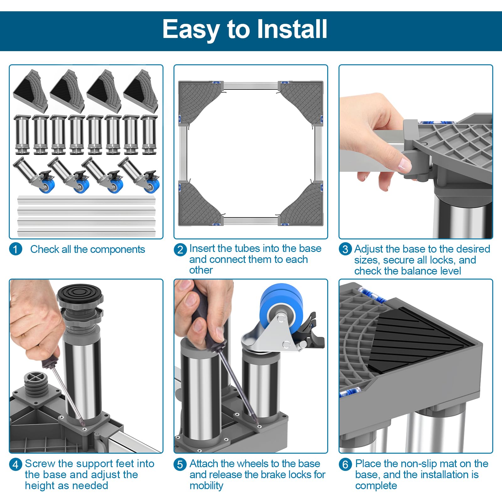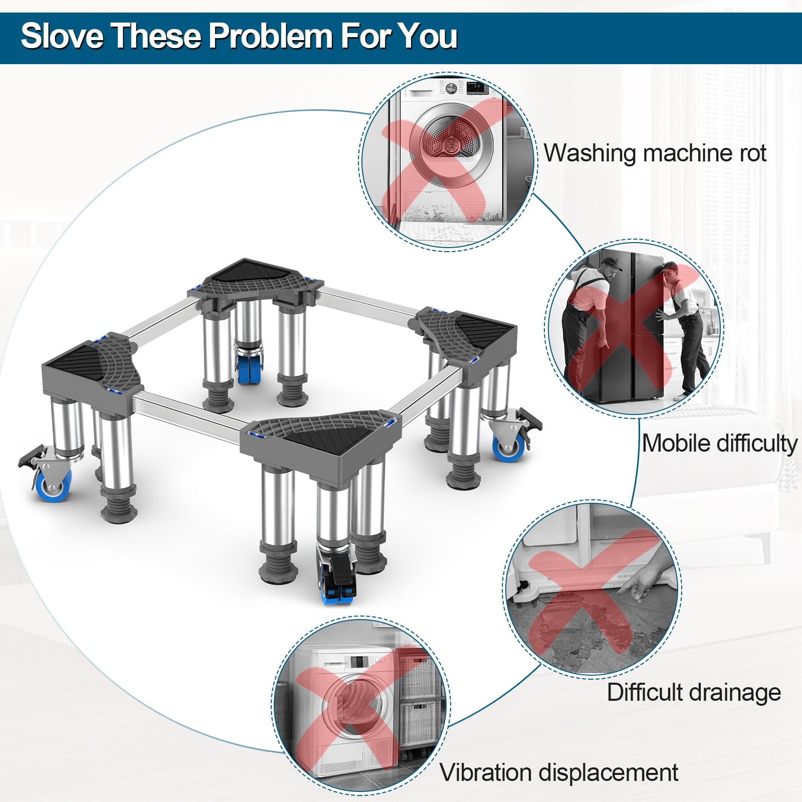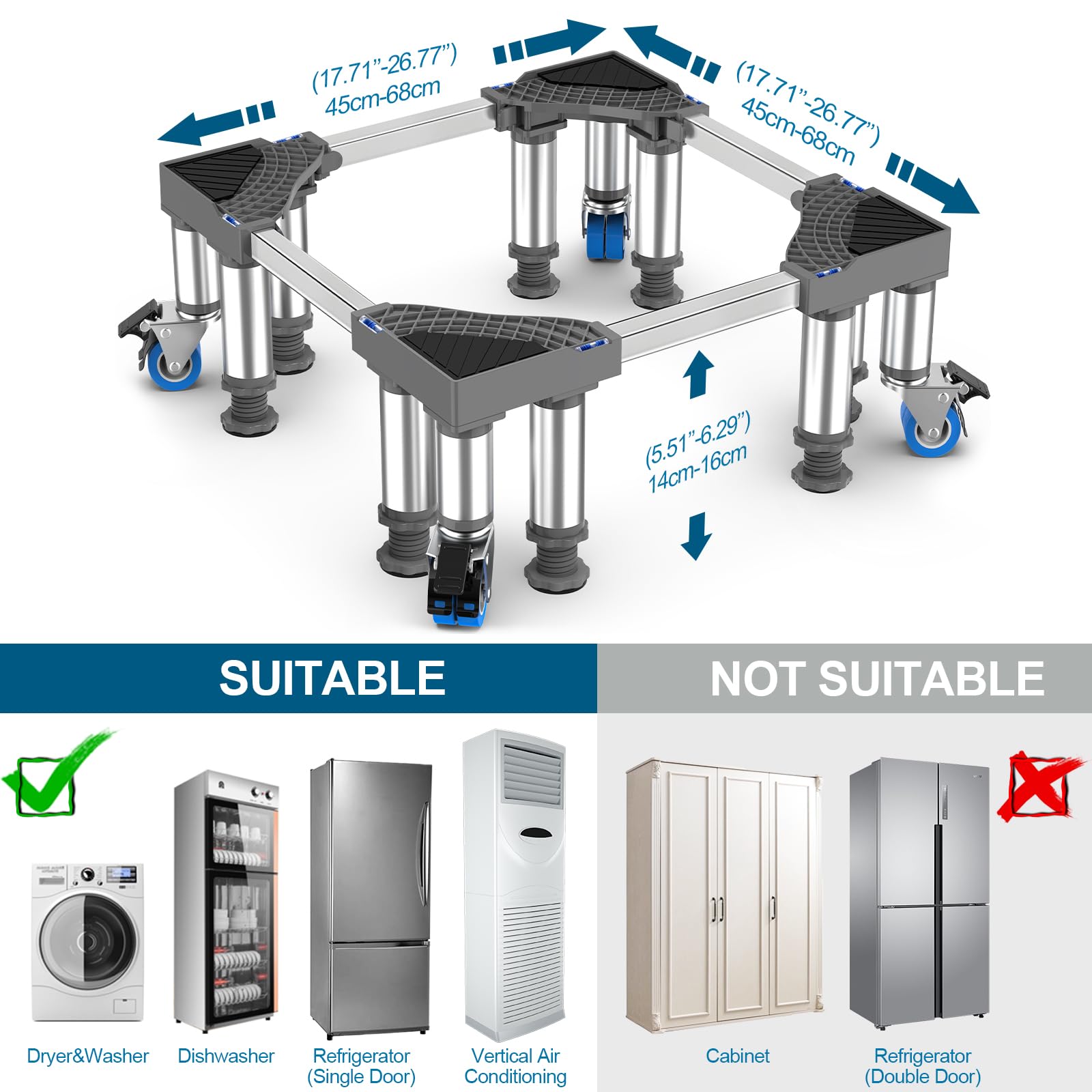 NIUXX Universal Waschmaschinen Untergestell: Verstellbare Sockel für 45-68cm Waschwaschine Trockner Kühlschrank - Tragkraft Max 400kg - Sockel Höhe 14-16cm Podest für Bad/Waschküche
