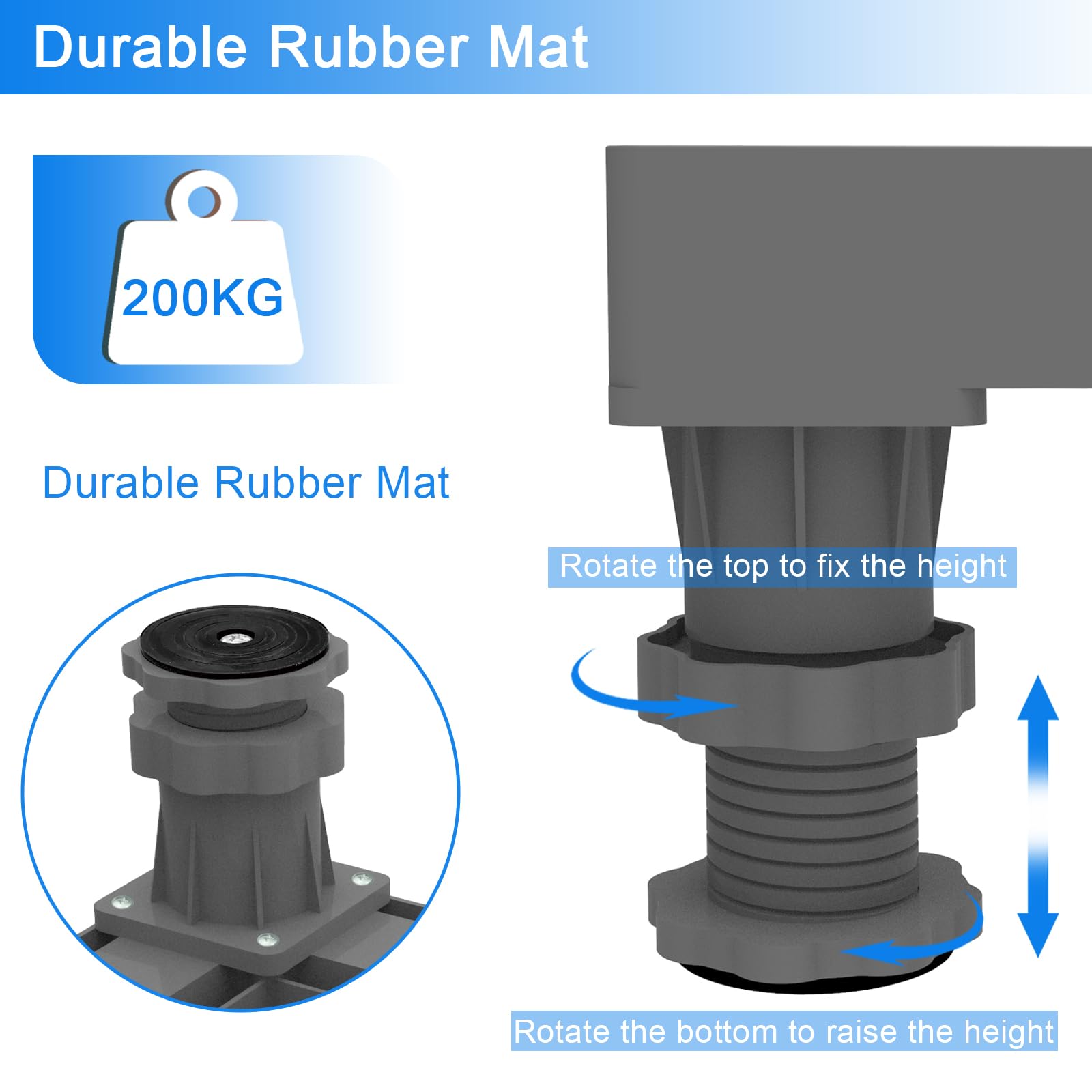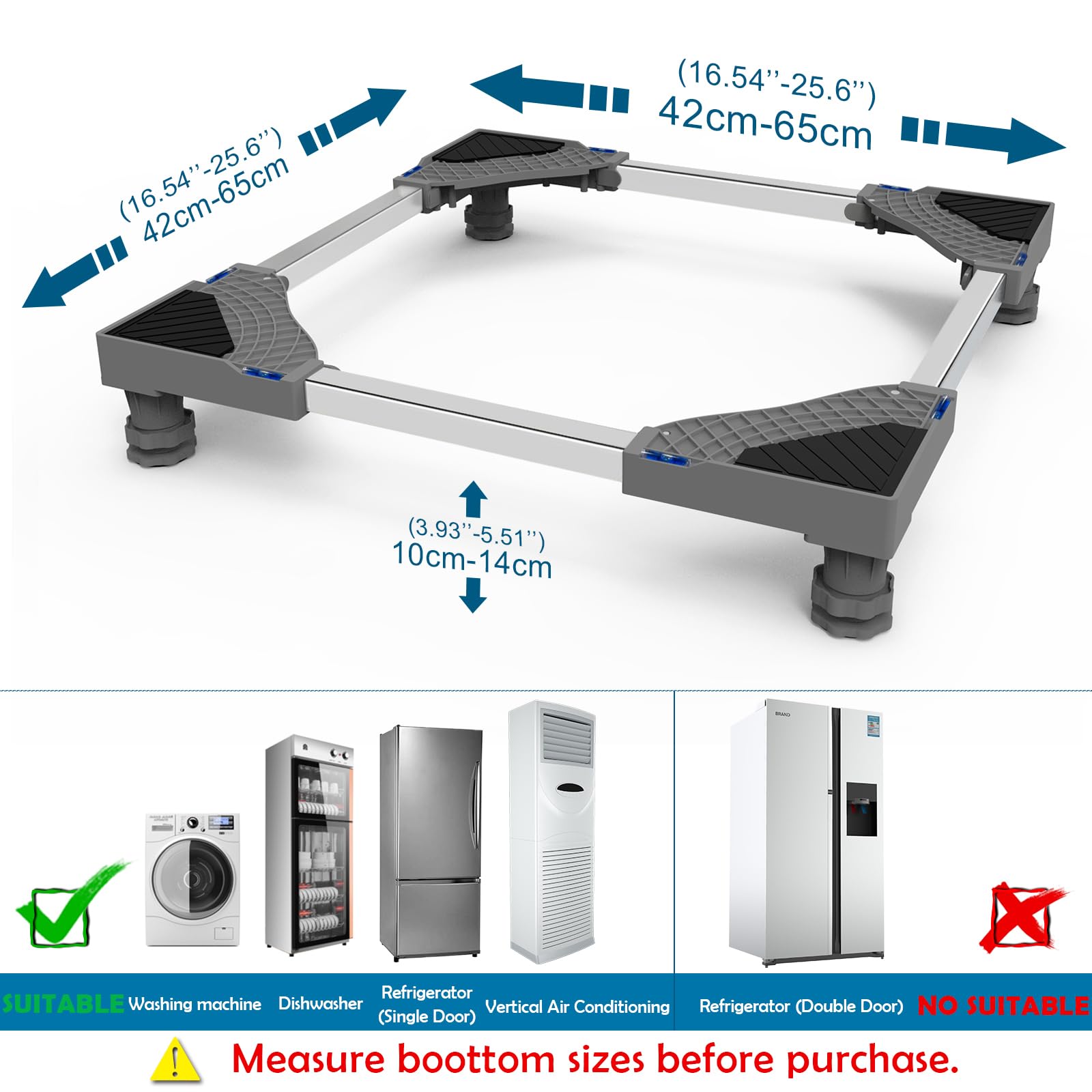 NIUXX Waschmaschinen Untergestell mit 4 Füssen für Waschwaschine,Kühlschrank und Trockner,Verstellbare Waschmaschinensockel mit Rutschfester Stossdämpfungsfunktion,(Einstellbare:42-65cm)
