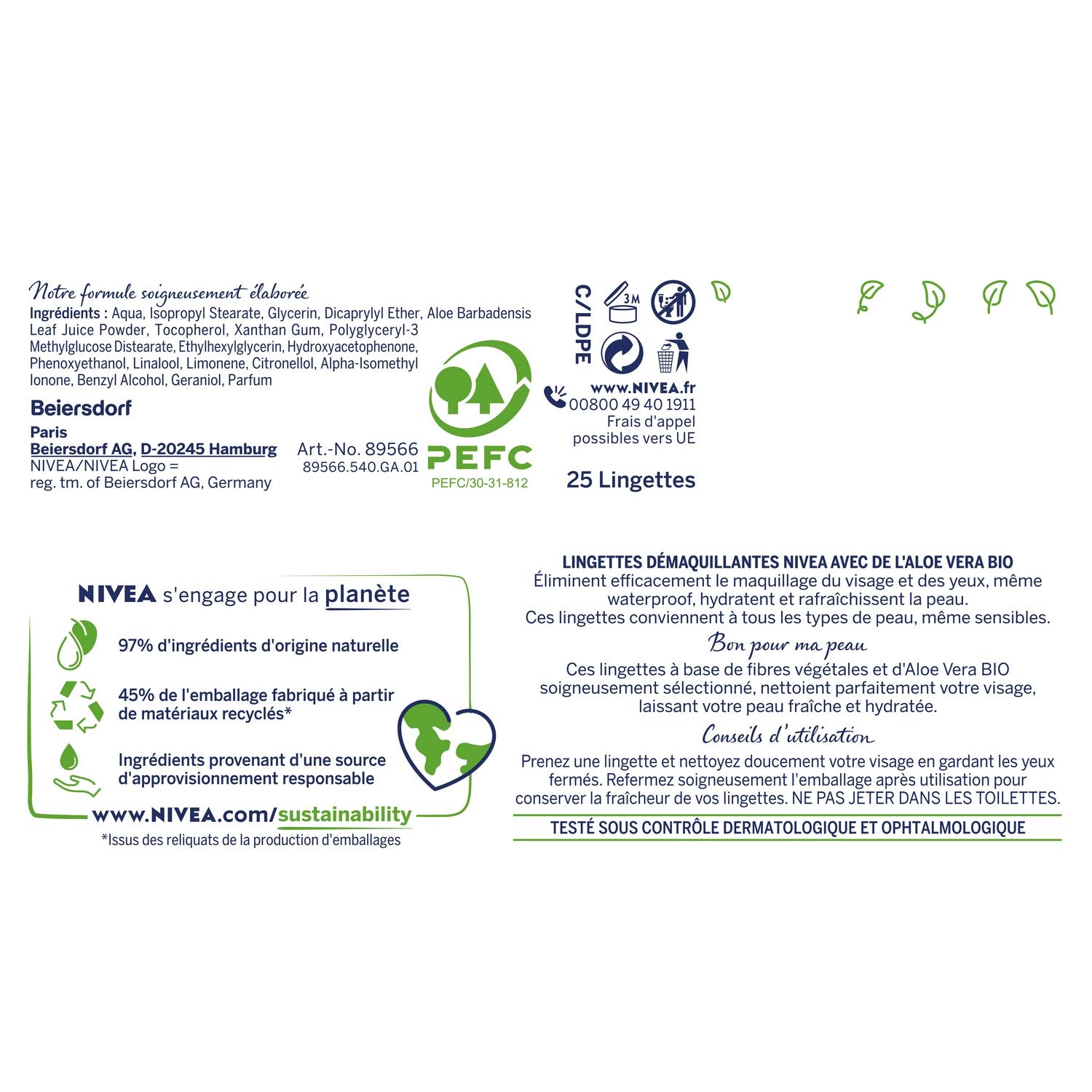 NIVEA Aloe Vera 100% Pflanzenfasern Make-up Entferner (6 x 25 Stk), Gesichts-Entferner für alle Hauttypen, biologisch abbaubare Reinigungstücher - 150 Stück