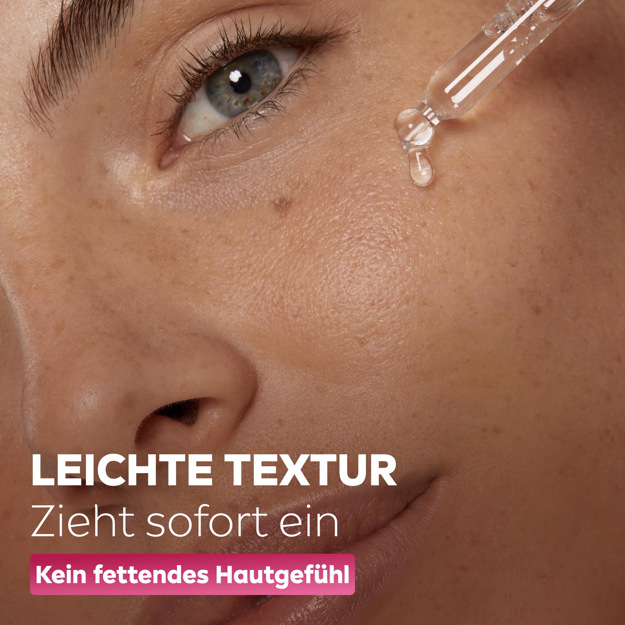 Nach der Reinigung und dem Toner eine kleine Menge des Serums auf Gesicht und Hals auftragen und sanft einklopfen, bis es vollständig eingezogen ist. Anschliessend eine passende Feuchtigkeitscreme verwenden. Für beste Ergebnissemorgens und abends in die Hautpflegeroutine integrieren.