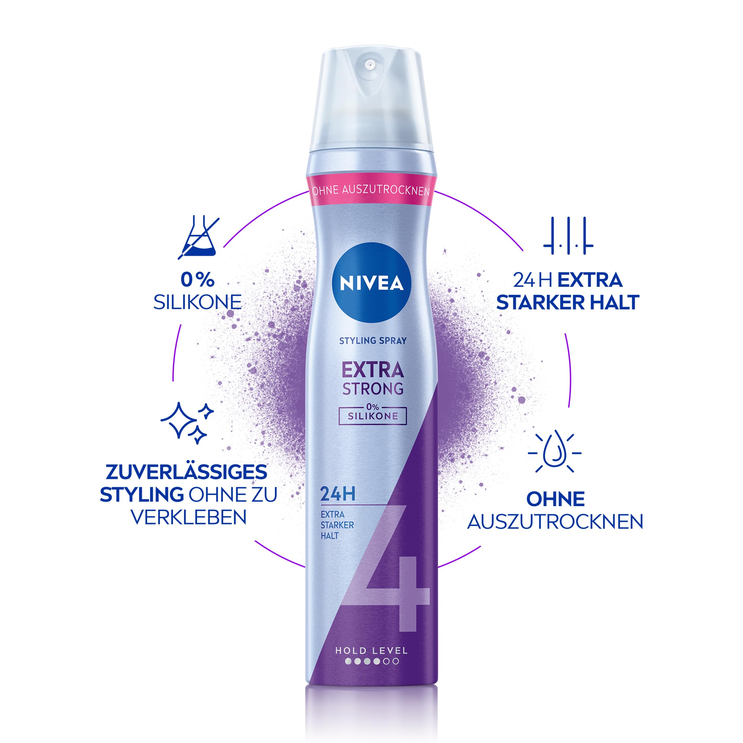 NIVEA Extra Strong Styling Spray, stärkendes Haarspray mit Panthenol & Vitamin B3, zuverlässiger Haarlack für Stylings mit 24h Halt (Haltestufe 4), veganes Pflegespray (250 ml)