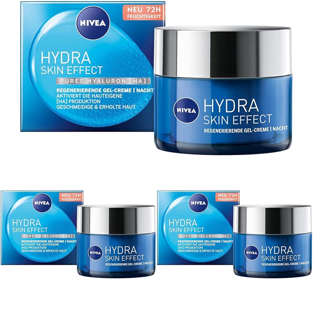 NIVEA Hydra Skin Effect Regenerierende Gel-Creme 3er Pack (3 x 50ml) – Nachtpflege mit purem Hyaluron [HA] – 72h Feuchtigkeit für geschmeidige Haut