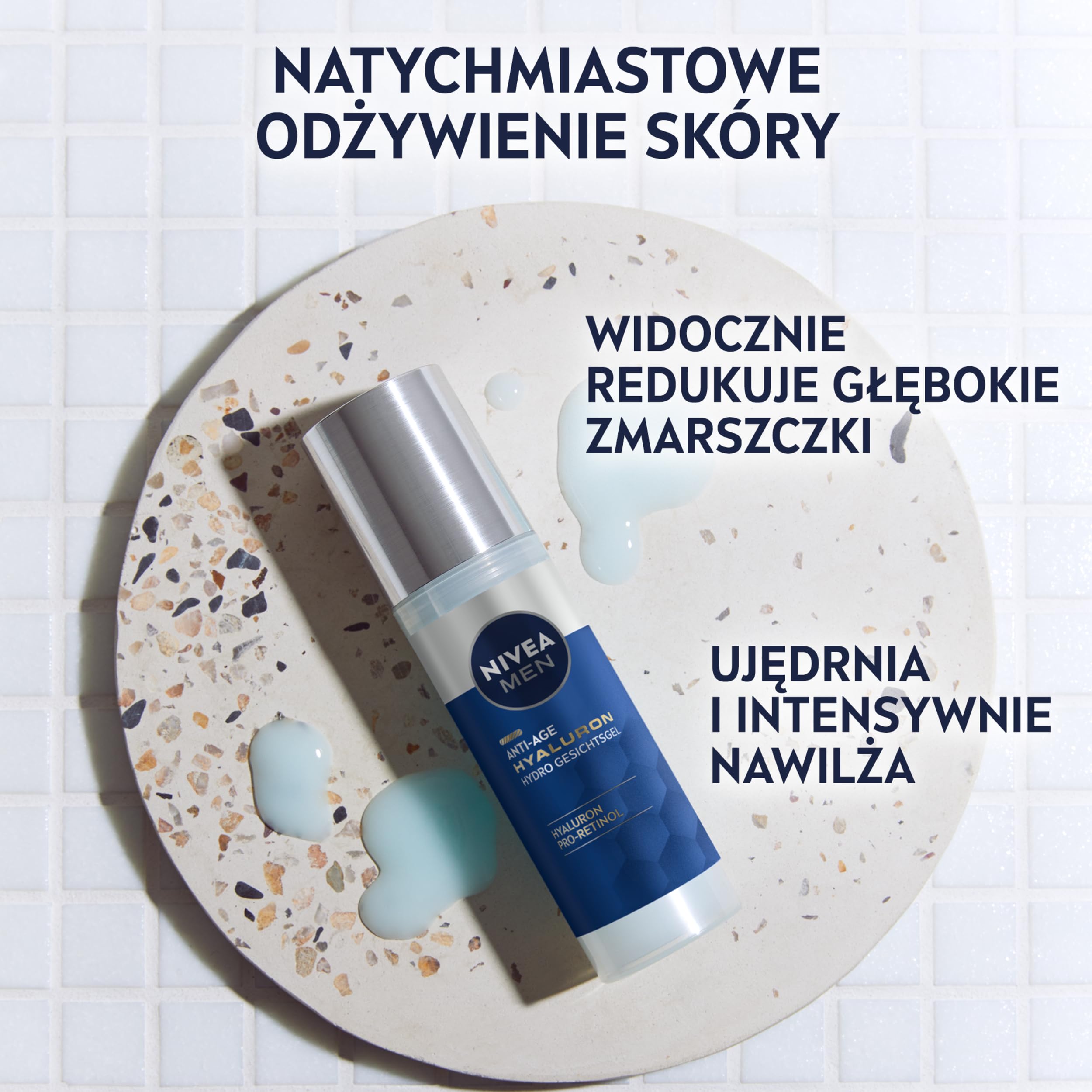 NIVEA MEN Anti-Age Hyaluron Hydro Gesichtsgel, Gesichtspflege für Männer mit Hyaluron und Pro-Retinol, schnell einziehendes Gel für 24h intensive Feuchtigkeit und sichtbare Faltenmilderung (50 ml)