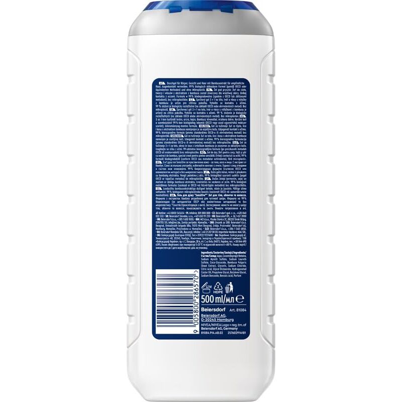 Das NIVEA Men Duschgel Sensitive bietet eine erfrischende Pflegedusche für Haut und Haar. Angereichert mit Bambusmilch und der Hydra IQ Technology, sorgt es für intensive Feuchtigkeitspflege und schützt die Haut vor dem Austrocknen. Der sanfte, weiche Schaum reinigt die Haut gründlich und hinterlässt ein frisches, gepflegtes Hautgefühl. Der angenehm frische Duft sorgt für ein belebendes Duscherlebnis, das Sie den ganzen Tag begleitet.