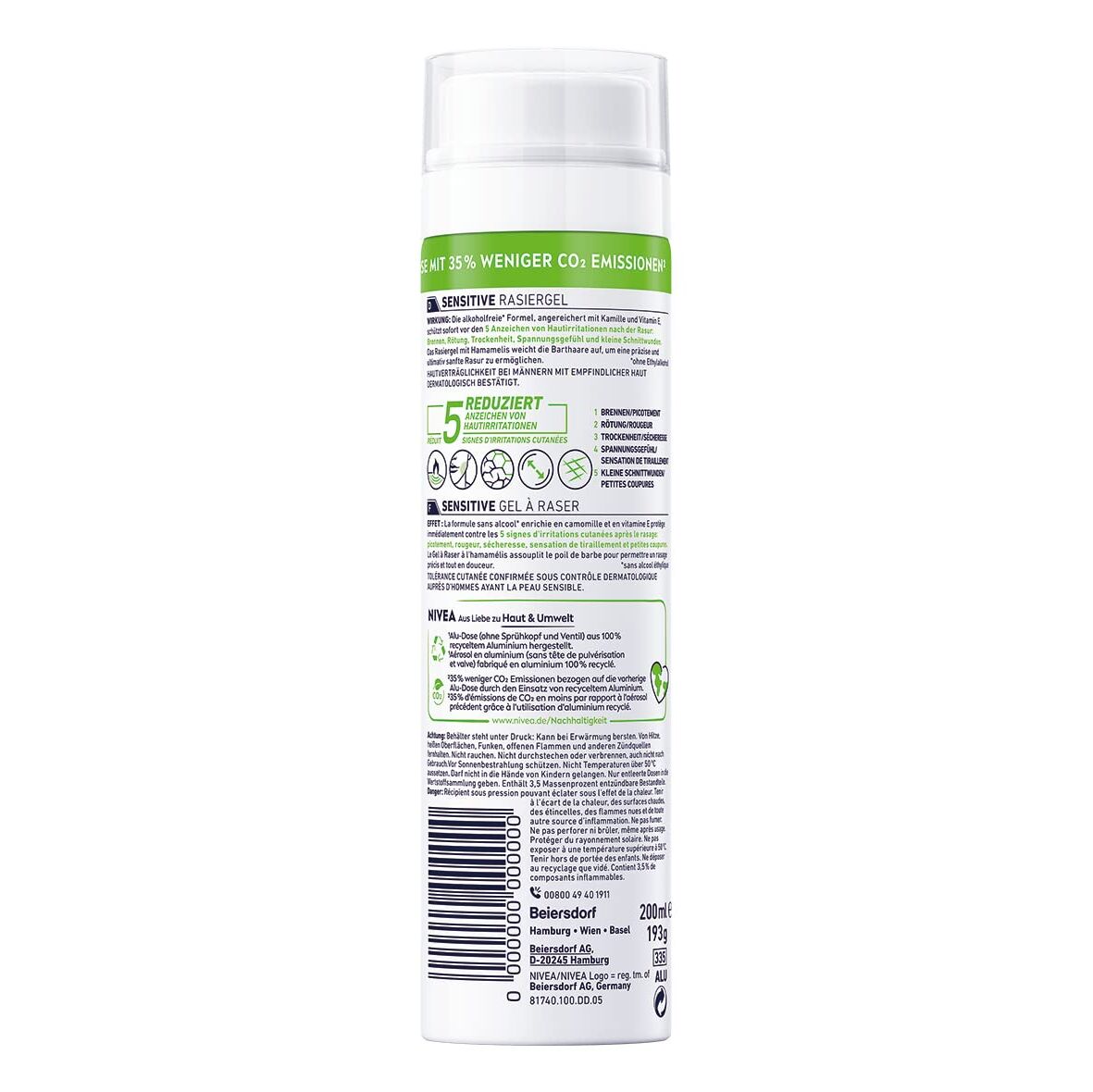 NIVEA MEN Sensitive Rasiergel (200 ml) Mit Kamille, Hamamelis und Vitamin E für Eine Sanfte Rasur - Schützend Gegen Hautirritationen (3er-Pack)