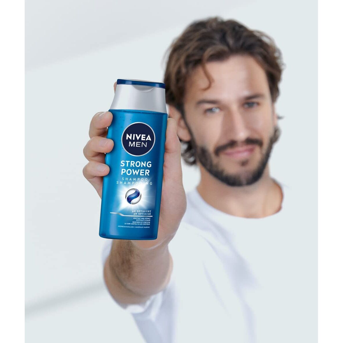NIVEA MEN Strong Power Shampoo, kräftigendes Haarshampoo ohne Silikone und Mikroplastik, Männer Shampoo mit Meeresmineralien und pH-optimierter Formel (250 ml)