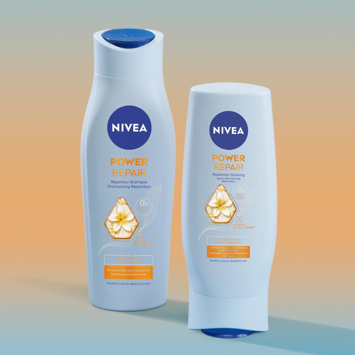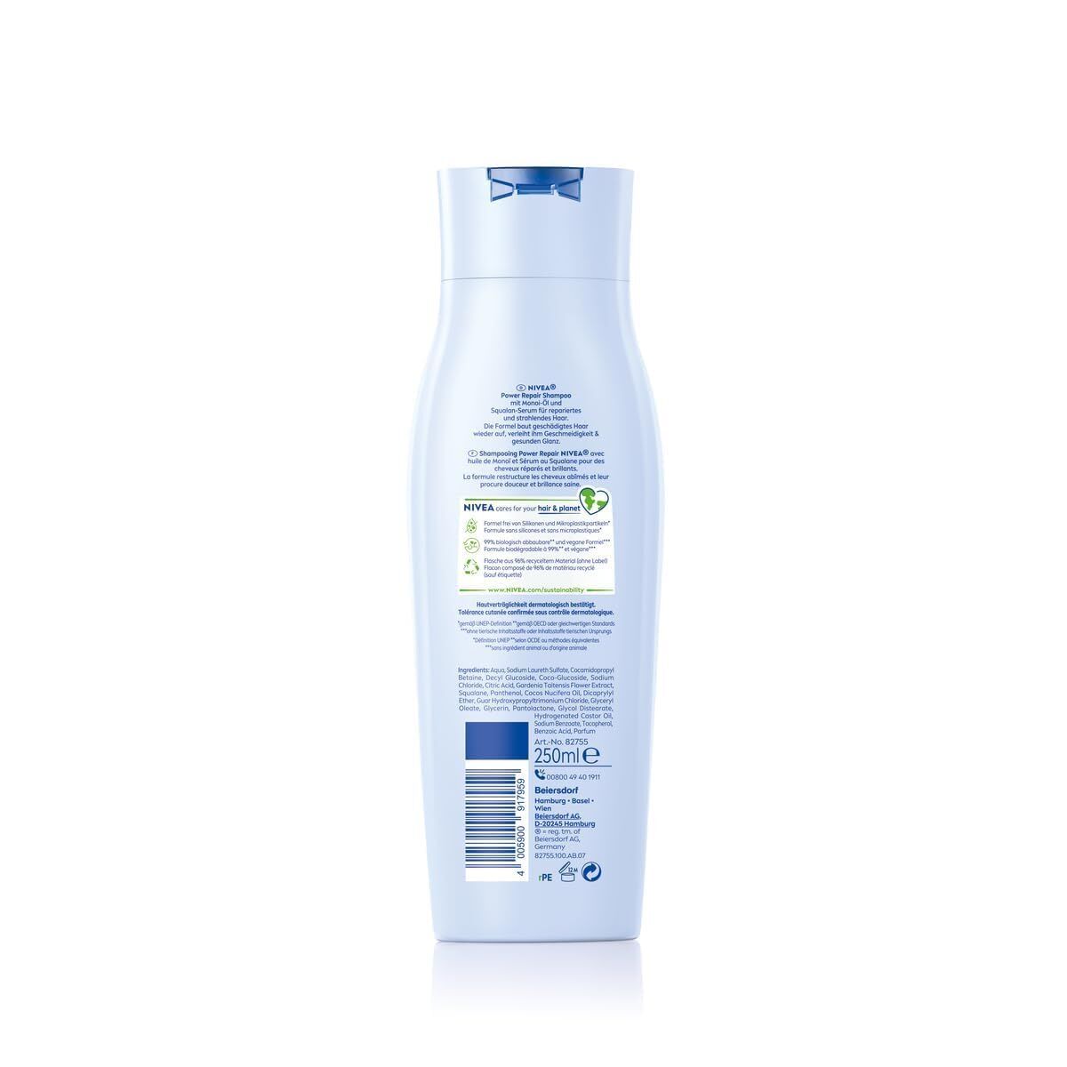 NIVEA Power Repair Reparatur Shampoo, reparierendes Haarshampoo gegen Spliss mit Squalan Serum und Monoi-Öl, Pflegeshampoo für gesunde Haare und mehr Glanz (250 ml)