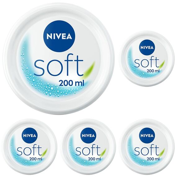 NIVEA Soft 3-in-1 Feuchtigkeitspflege (1 x 200 ml), Gesichts-, Körper- und Handcreme für intensive Feuchtigkeitspflege, Mehrzweck-Feuchtigkeitscreme (Packung mit 5)