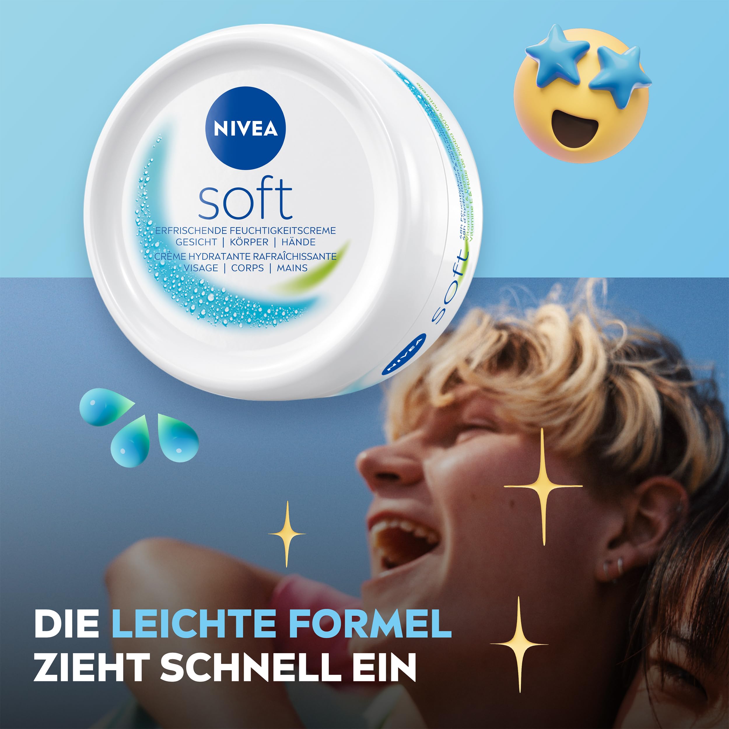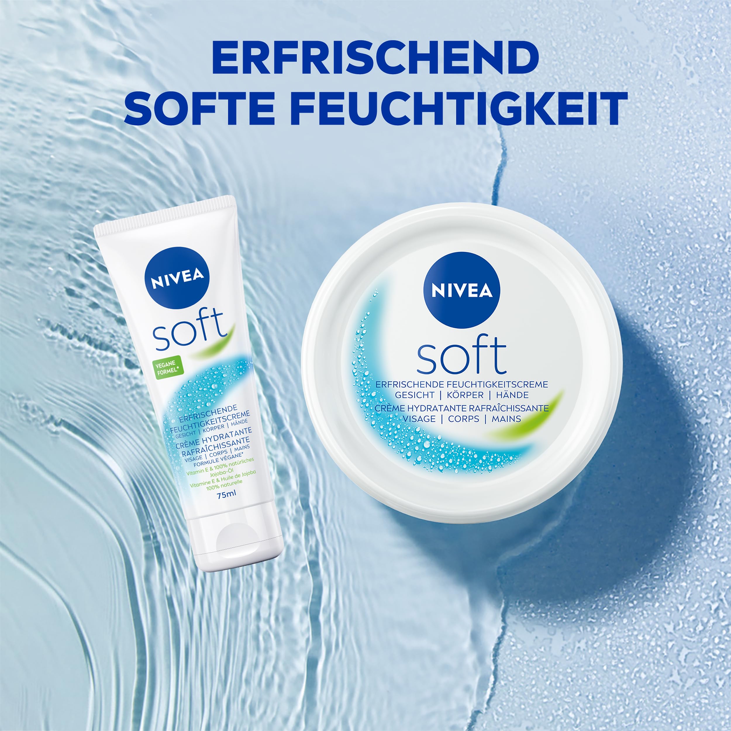 NIVEA Soft Erfrischende Feuchtigkeitscreme, leichte Creme mit Vitamin E und 100% natürlichem Jojoba-Öl, schnell einziehende Hautcreme für intensive Feuchtigkeit (50 ml)