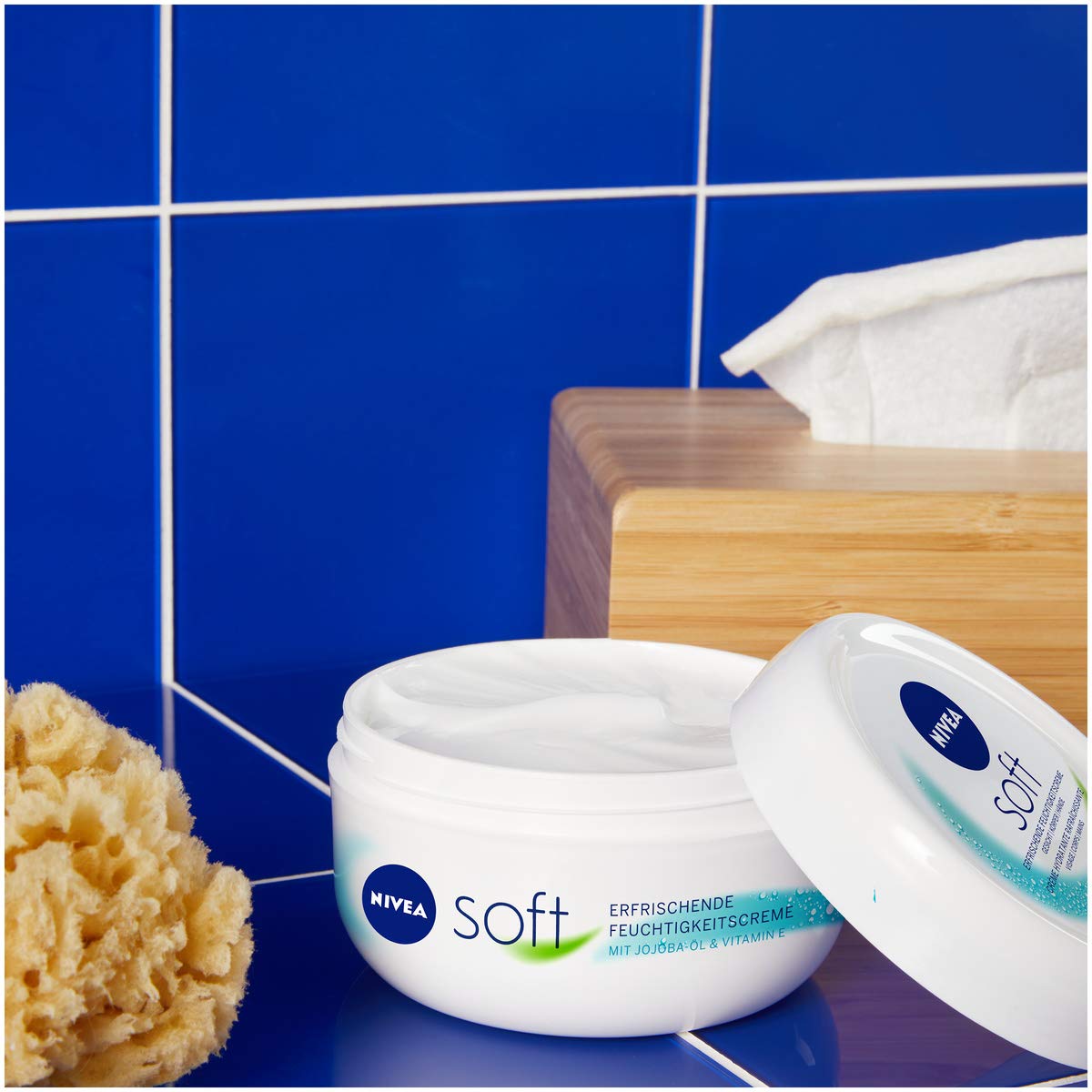 NIVEA Soft Erfrischende Feuchtigkeitscreme (200 ml) – Leichte Pflege mit Vitamin E & Jojoba-Öl – Schnell einziehende Allzweckcreme für Gesicht, Körper & Hände