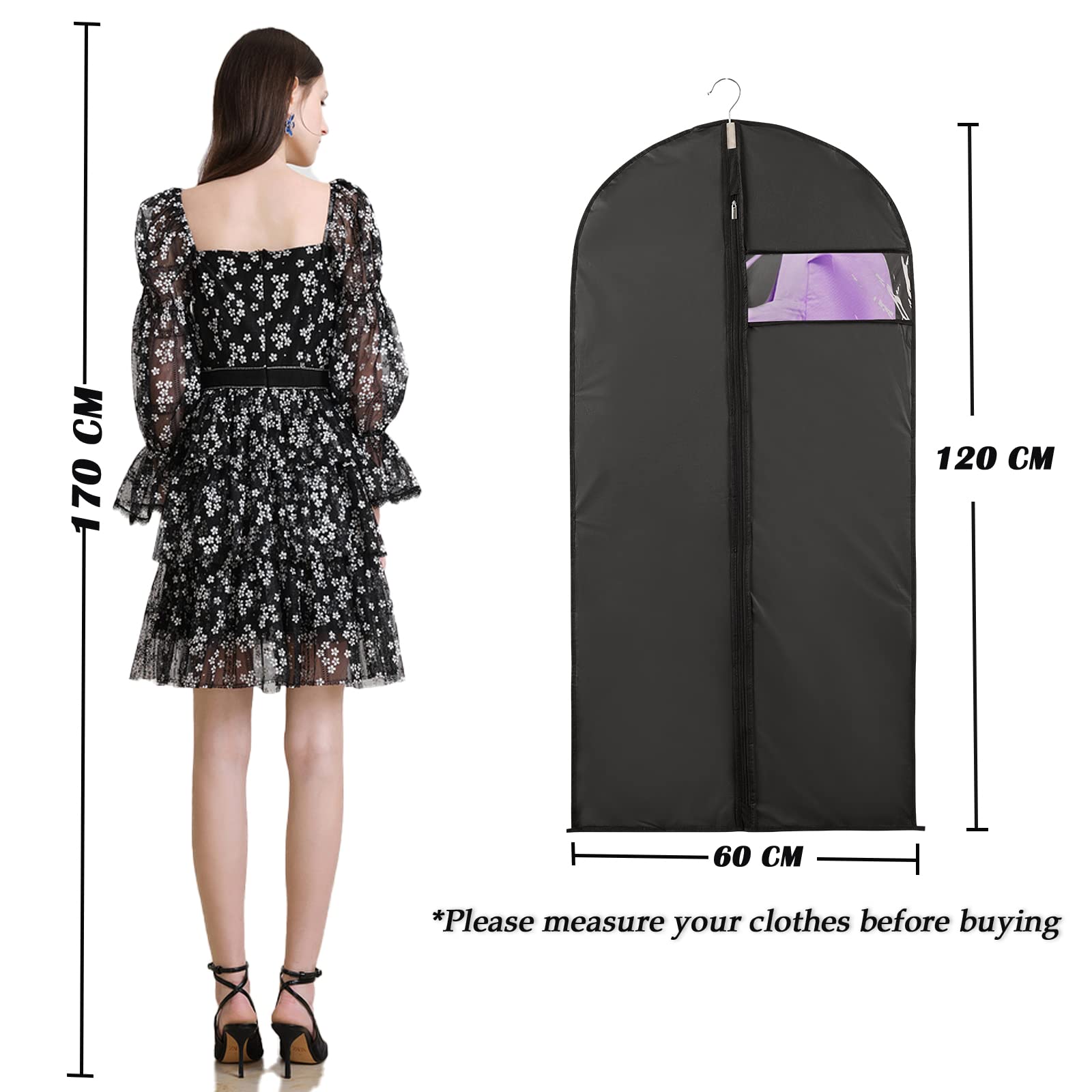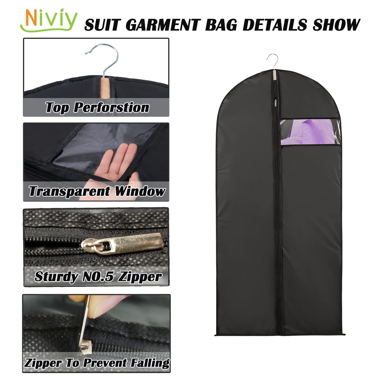 Niviy kleidersack Anzug Schwarz 5 xReise kleidersäcke Lang 60X120CM Wasserdicht Atmungsaktiv Stoff,Für Anzüge Kleider Mäntel Sakkos Hemden Abendkleider Anzugsack kleiderschutzhüllen Mit Reissverschluss