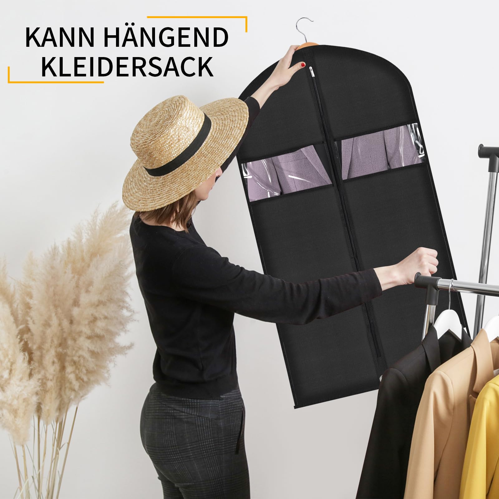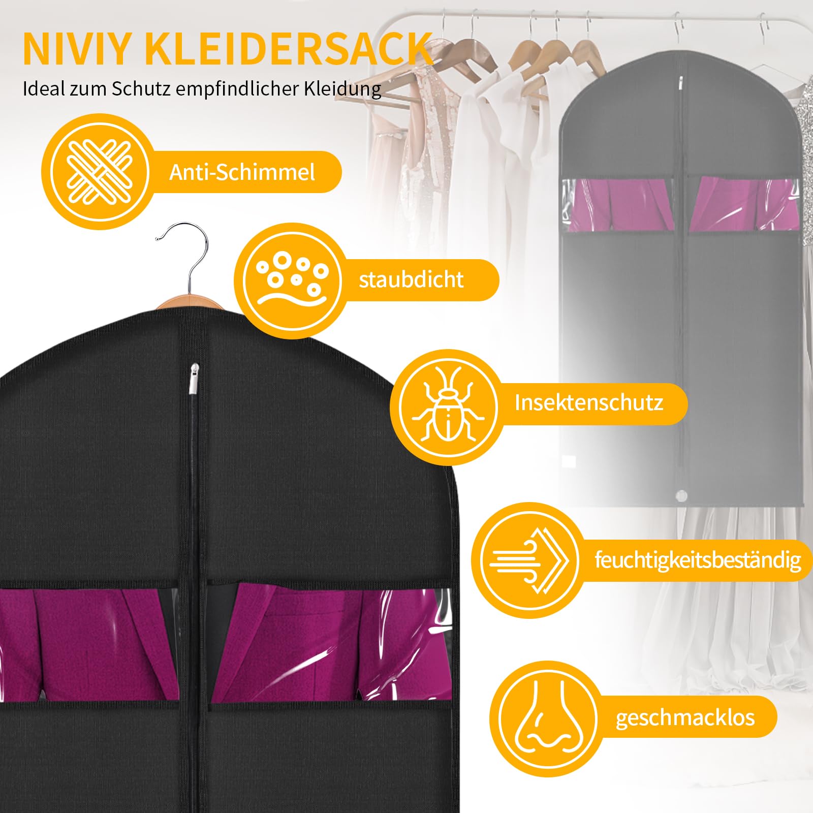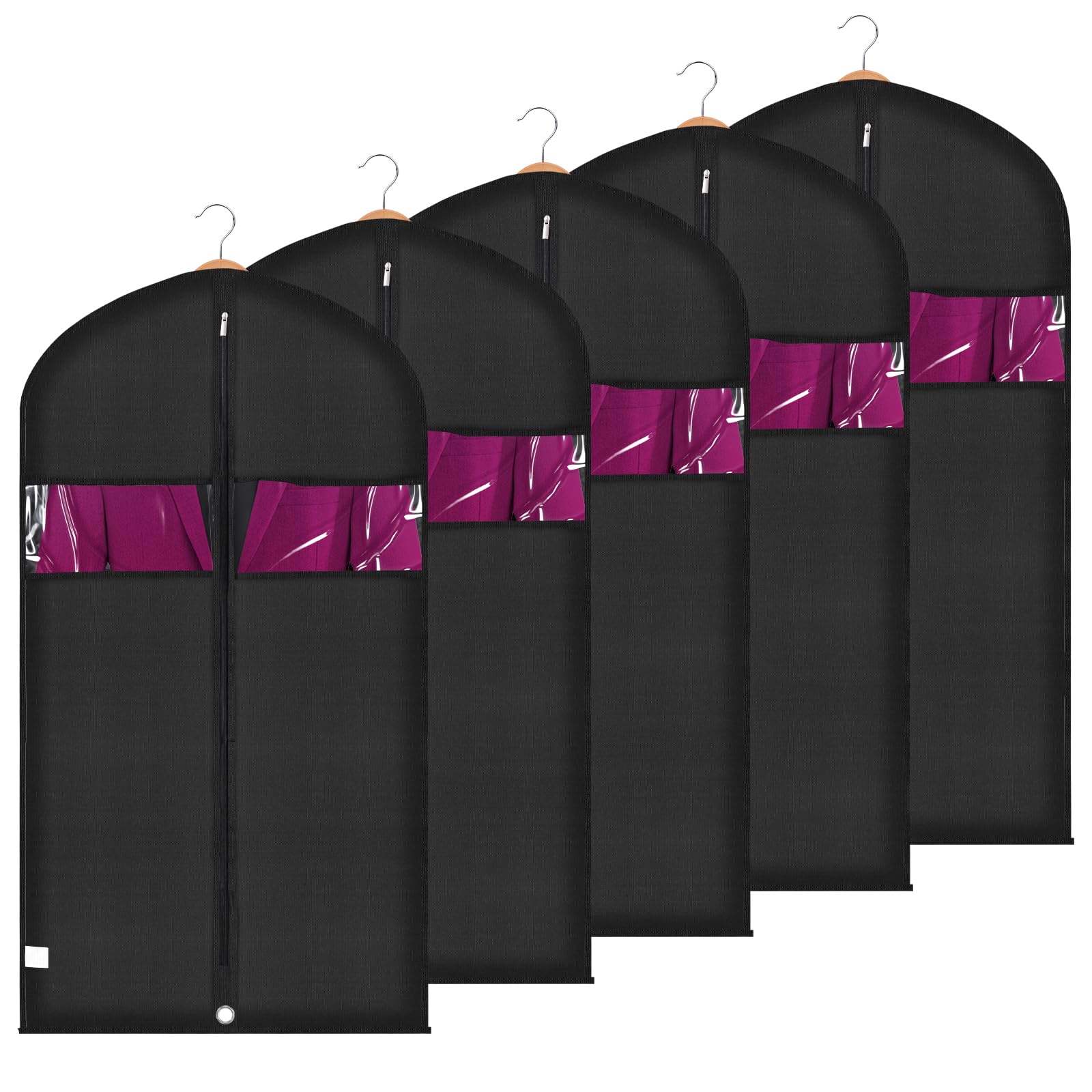 Niviy kleidersack Lang 110X60CM Reissverschluss Kleiderhülle Schwarz Anzugtasche für Reisen Atmungsaktiv Premium Oxford-Stoff,Für Anzüge Kleider Mäntel Sakkos Hemden Abendkleider Aufbewahrung 5PCS