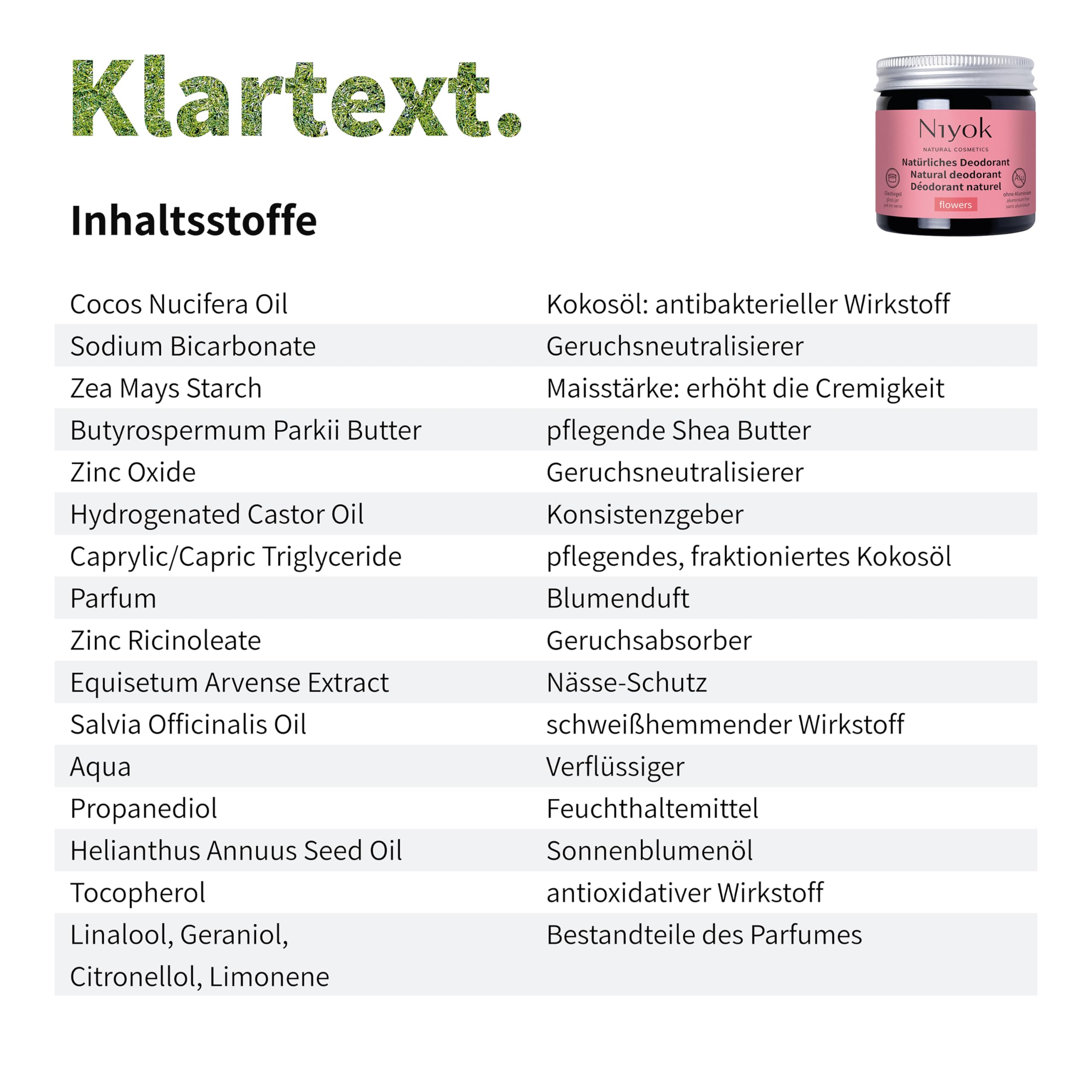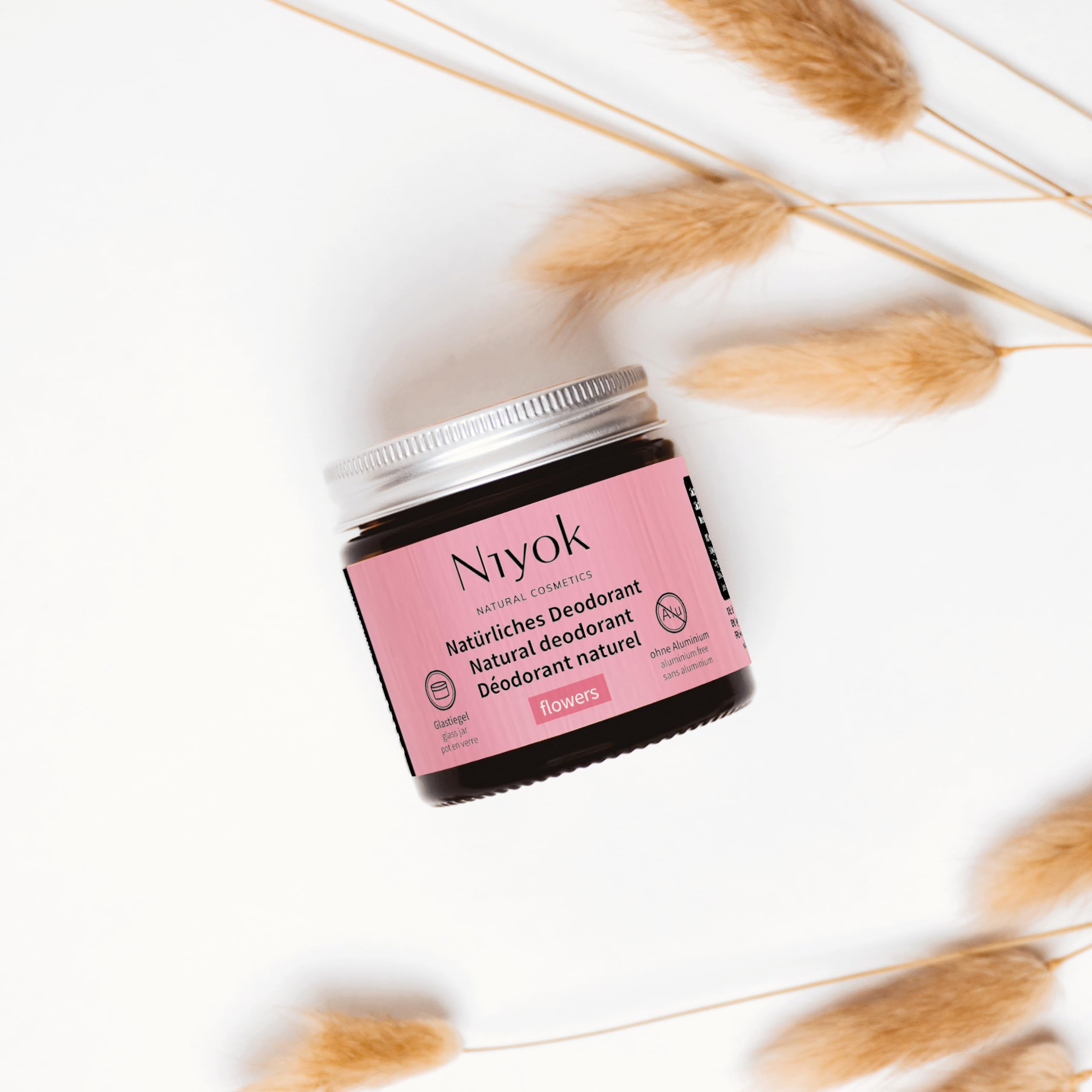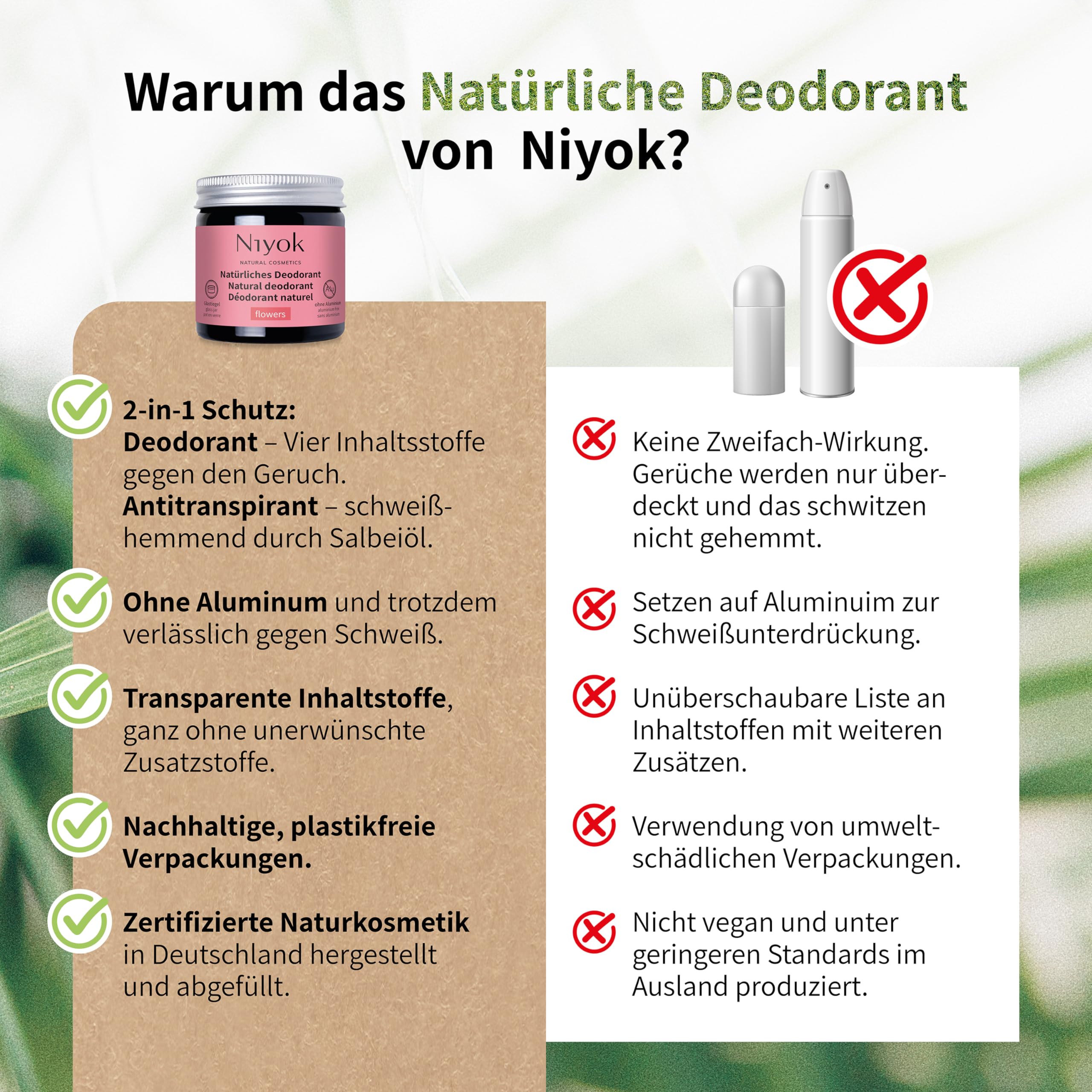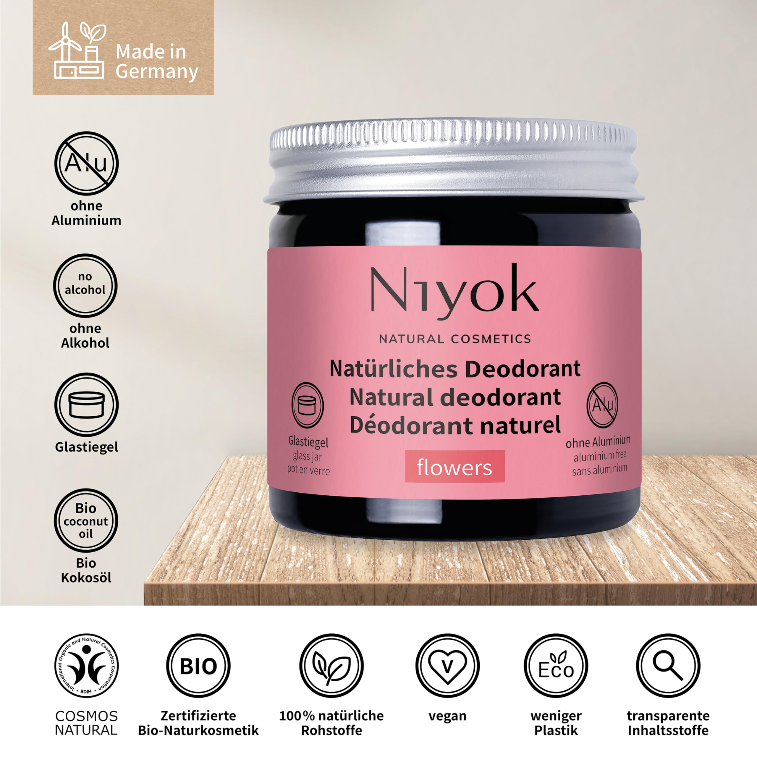 Niyok® 2-in-1 anti-transpirante Deocreme "Flowers" (40ml) • Natürliches Deo ohne Aluminium • 24h Schutz vor Geruch & Schweiß • Deodorant Creme für Damen & Herren • Feste Deo Creme vegan