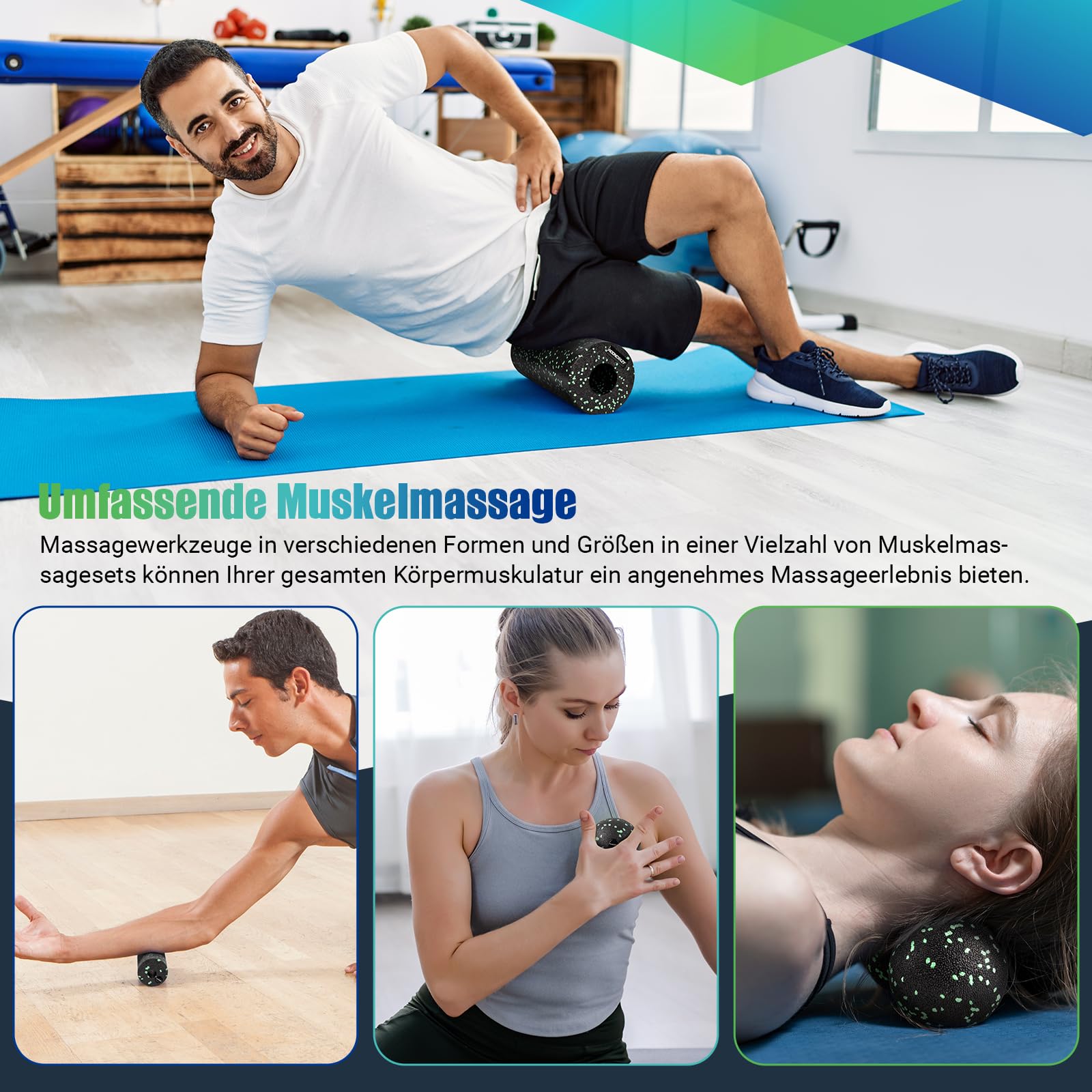• Einfaches und effizientes Faszientraining: Das Faszienrolle Set ist eine gute Wahl für Physiotherapeuten und Fitnessbegeisterte. Es ist ideal zur Behandlung von Muskelschmerzen und zur Verbesserung der Mobilität. Für die Verwendung vor und nach dem Training ist dies eines der besten Fitnesswerkzeuge, um dem Körper zu helfen, sich zu erholen. Dieses Effekt ist sowohl für Anfänger als auch für Profis von entscheidender Bedeutung.