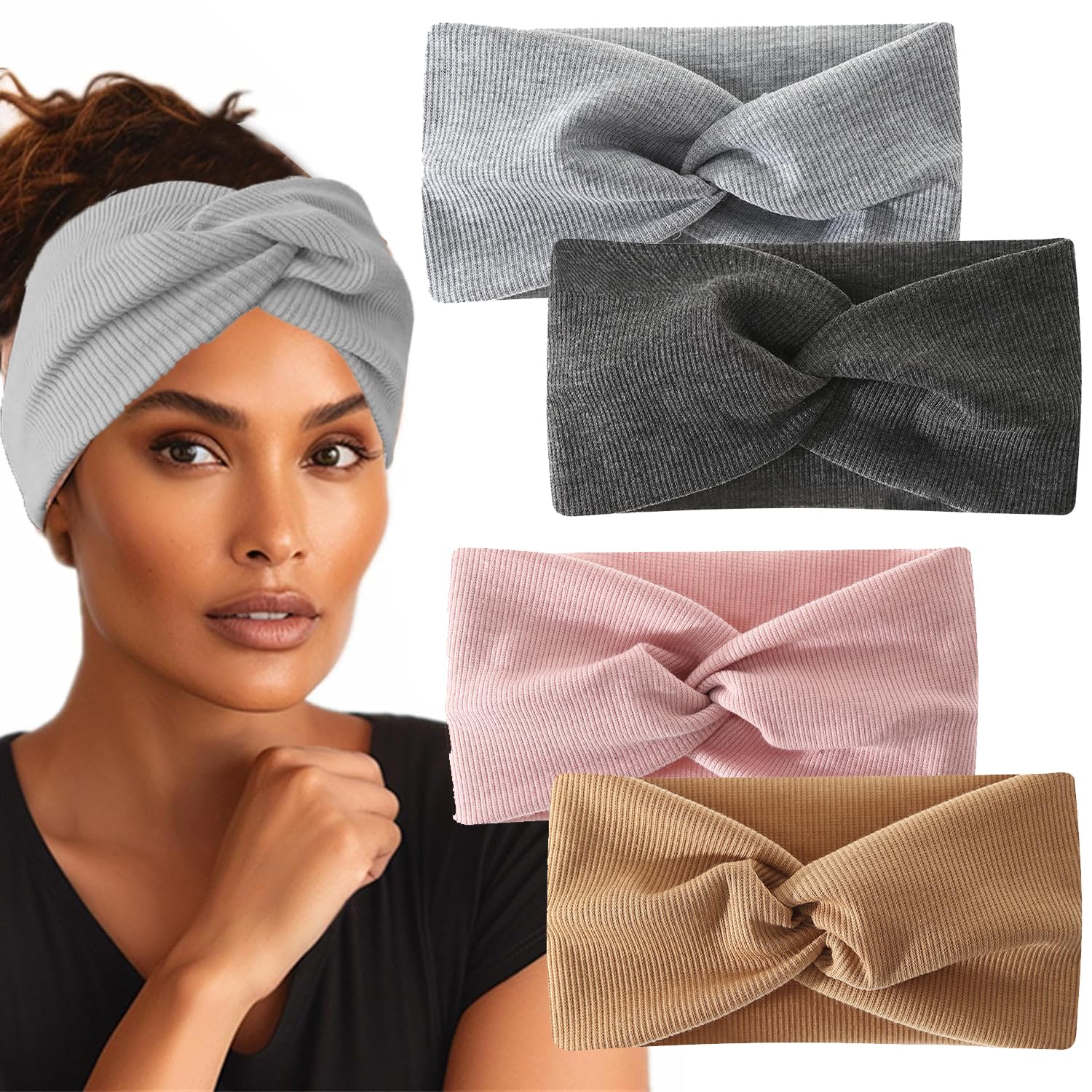 Norhogo 4 Stück Sommer Elastische Stirnbänder, stirnband damen, Haarreif Elastisch Breites Stirnband Baumwollkreuz Stirnband Knoten Sport Headwrap Headband Yoga Haarschmuck für Damen Mädchen (Stil-c)