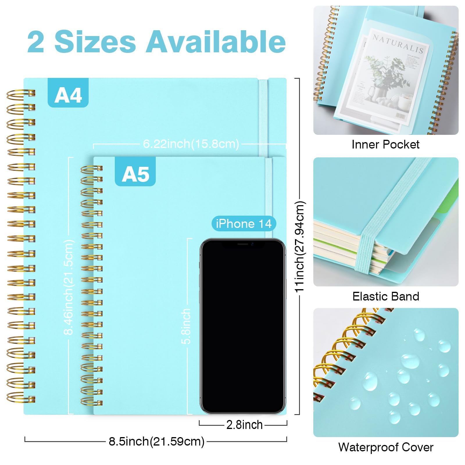 Notizbuch, Notizbuch A4 Liniert, Notizbücher Mit 5 Fächern Und Herausnehmbaren Trennblättern, 300 Blatt 100GSM Spiral Notizbuch Softcover Zum Schreiben, Für Arbeit Und Schulbedarf, 21.5 x 27.9cm, Blau