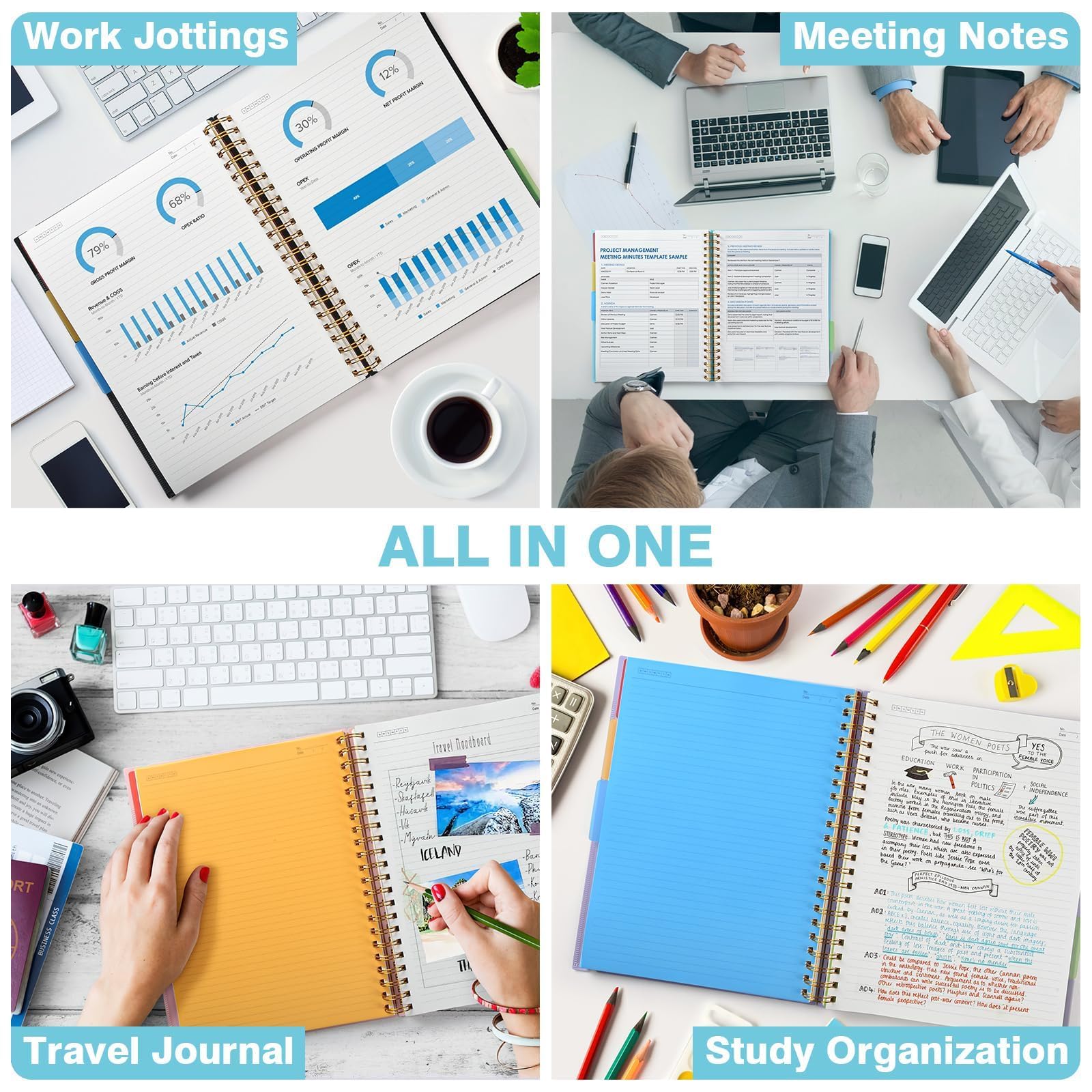 Notizbuch, Notizbuch A5 Liniert, Notizbücher Mit 5 Fächern Und Herausnehmbaren Trennblättern, 300 Blatt 100GSM Spiral Notizbuch Softcover Zum Schreiben, Für Arbeit Und Schulbedarf, 15.8 x 21.5cm, Blau