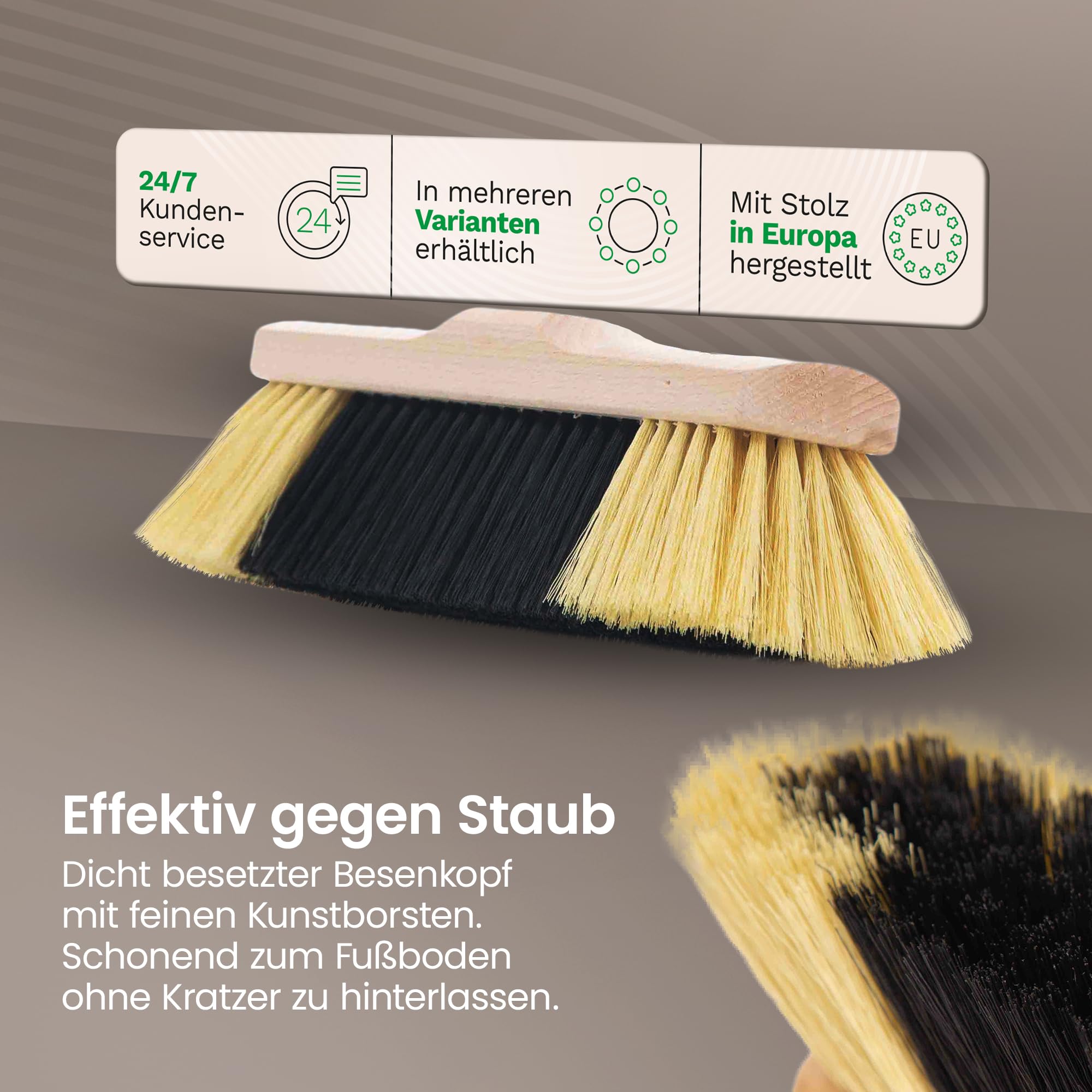 Novaliv Zimmerbesen mit Stiel FEINE KUNSTBORSTEN Besen weiche Borsten dicht besetzt Schrankbesen Holzbesen mit Teleskopstiel Künstliche PP Borsten Besen für Laminat und Parkett Stubenbesen