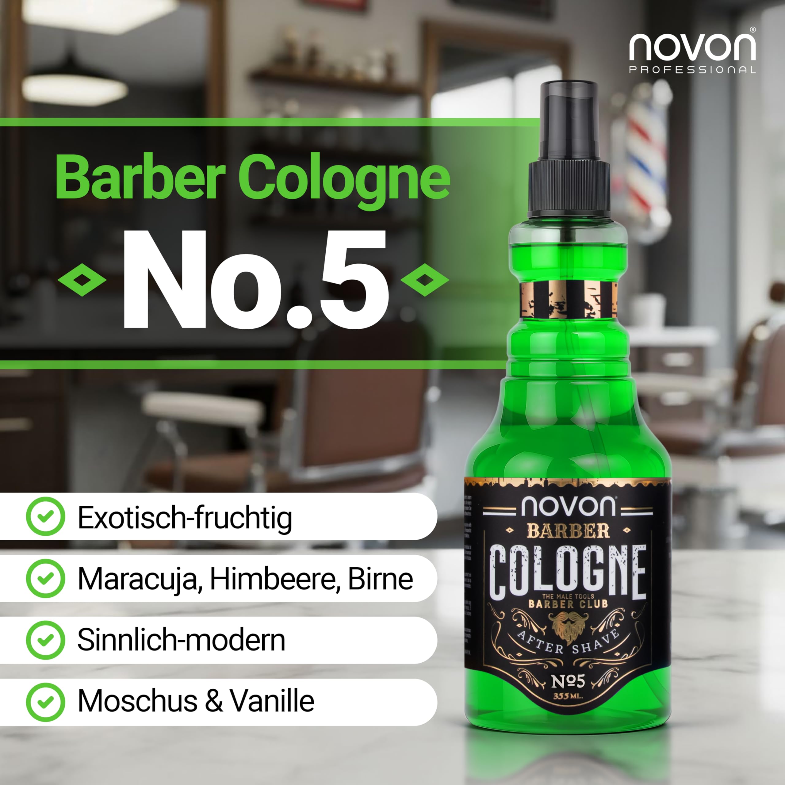 novon Professional Barber Cologne No. 5-355 ml - After Shave Spray für Männer - Rasur Duftwasser aromatisch-intensiv - Barber Eau de Cologne mit praktischen Pump-Spender - Erfrischend & Pflegend, EDC