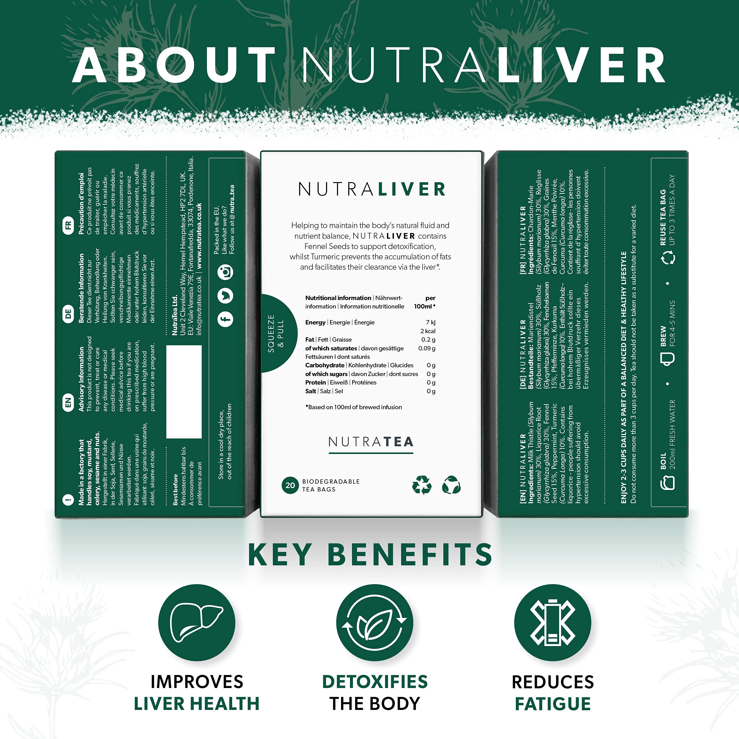 Nutra Tea Nutraliver Leberunterstützungstee, Leberentgiftungstee, Lebertee, Leberreinigung, Entgiftung und Reparatur, 120 kuvertierte Teebeutel, Kräutertee, 6er Pack