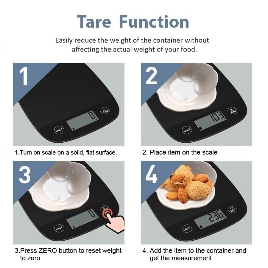 NUTRI FIT Digitale Küchenwaage, ultradünn, elektronische Multifunktionsküchenwaage, grosses Display, Kunststoffplattform, 5 kg, Schwarz