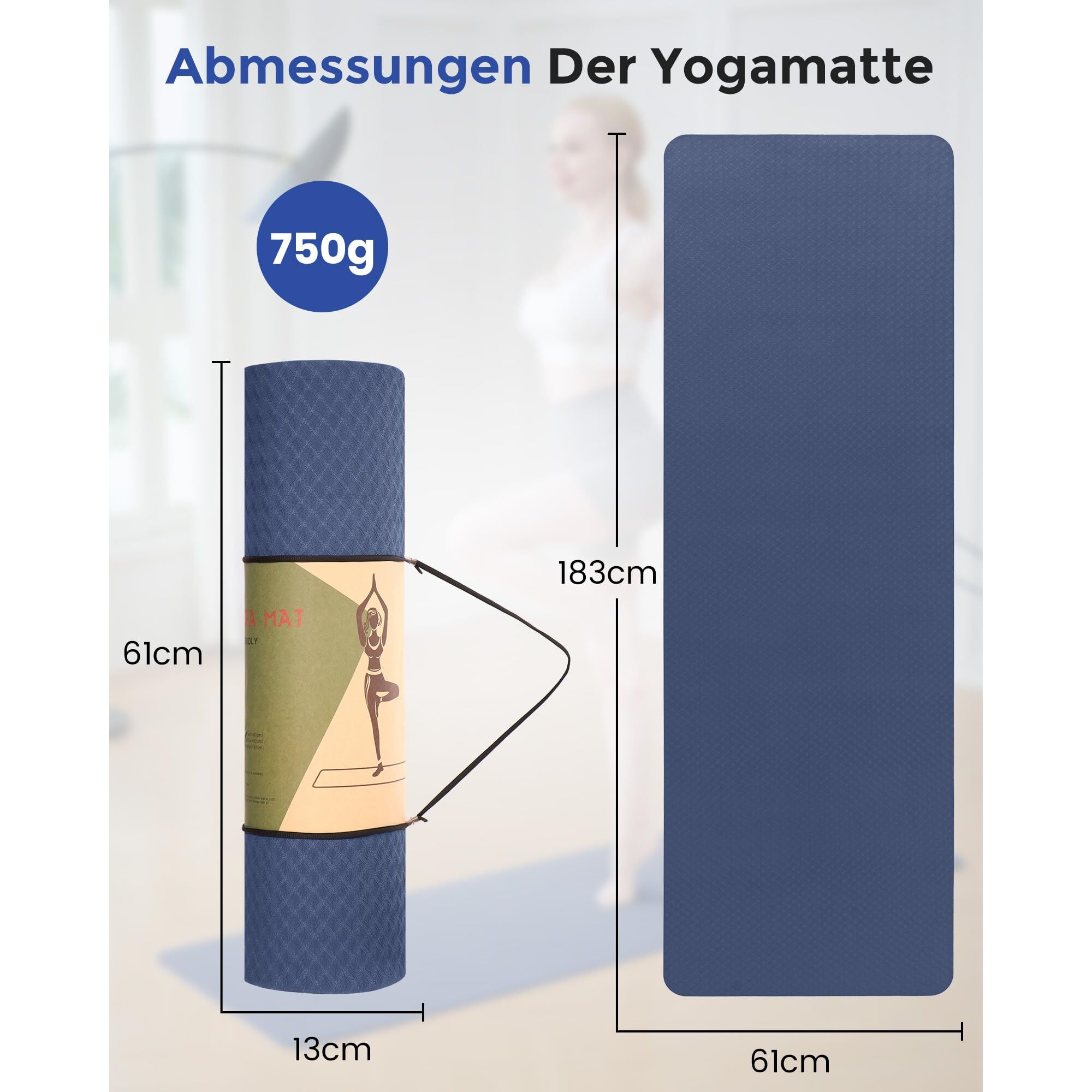 Oak & Tea Yogamatte Rutschfest Fitnessmatte Umweltfreundliche TPE Sportmatte mit Tragegurt Gymnastikmatte für Pilates Yoga Workout 183 x 61 x 0.6 cm