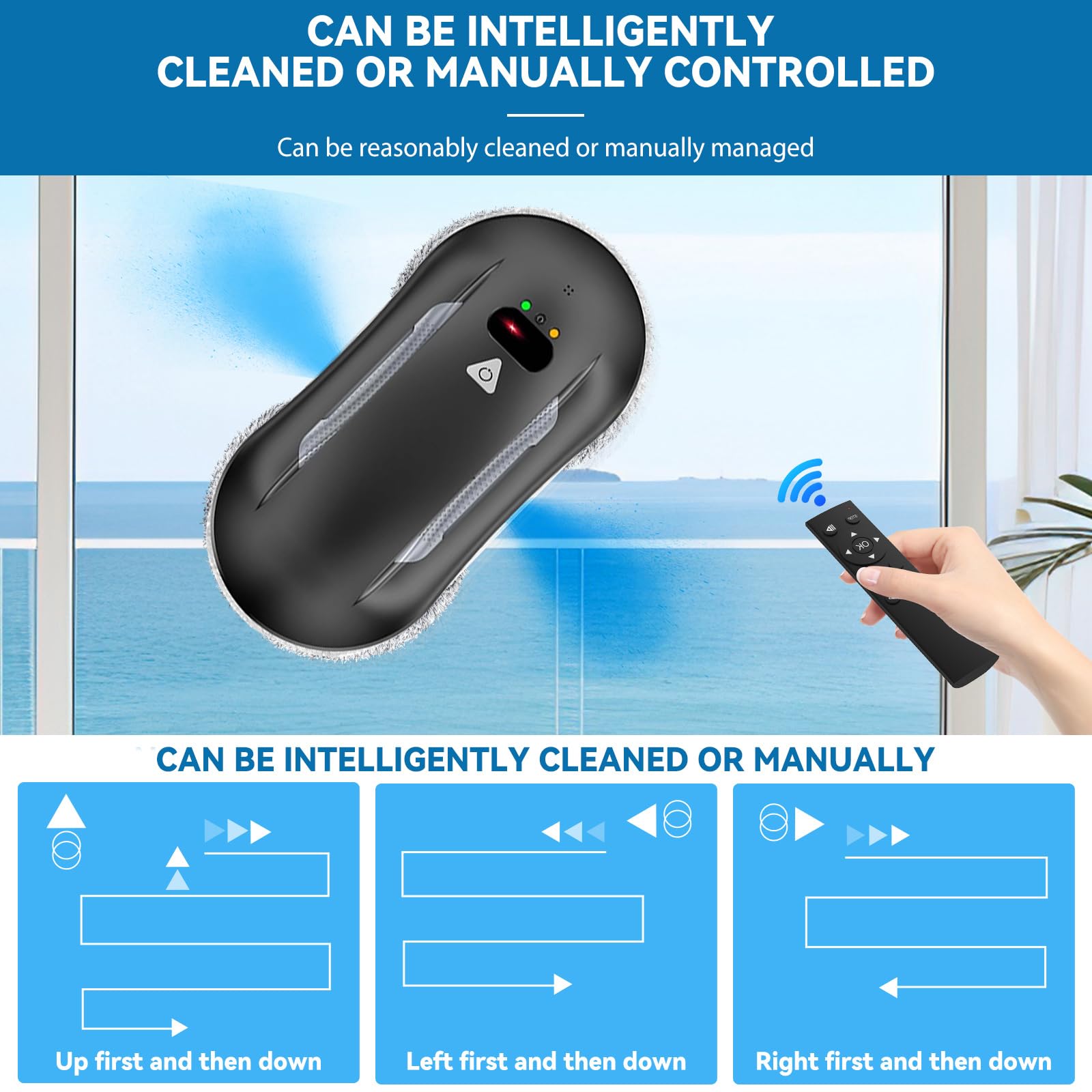 Oamger Fensterputzroboter, 5600Pa Fensterputzroboter mit Doppelter Sprühfunktion, Fernbedienung, Intelligente Navigation, Kantenerkennungssystem, Fensterreiniger Roboter für Innen- und Aussenfenster