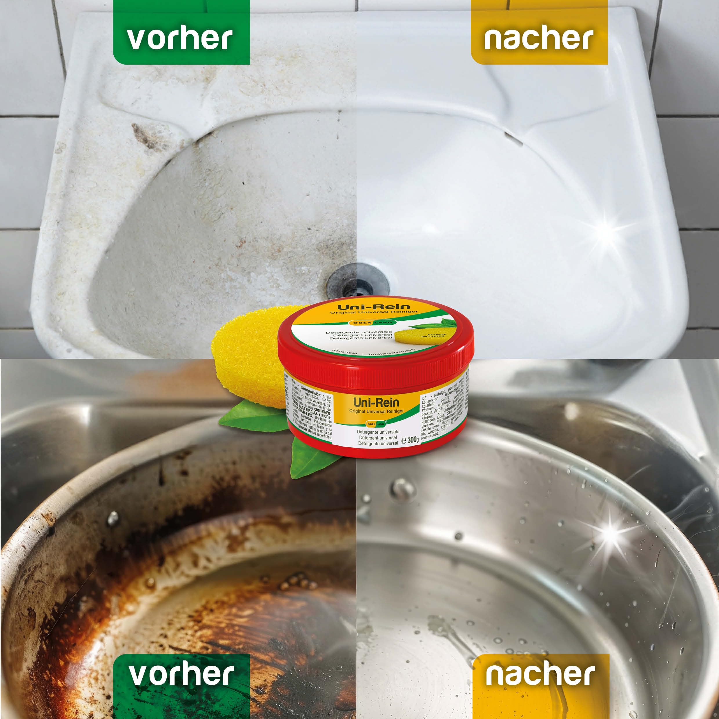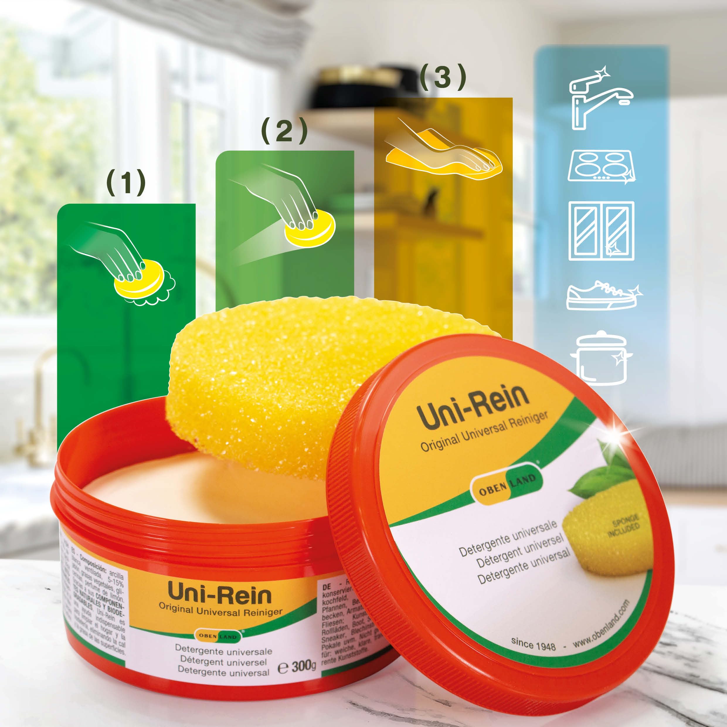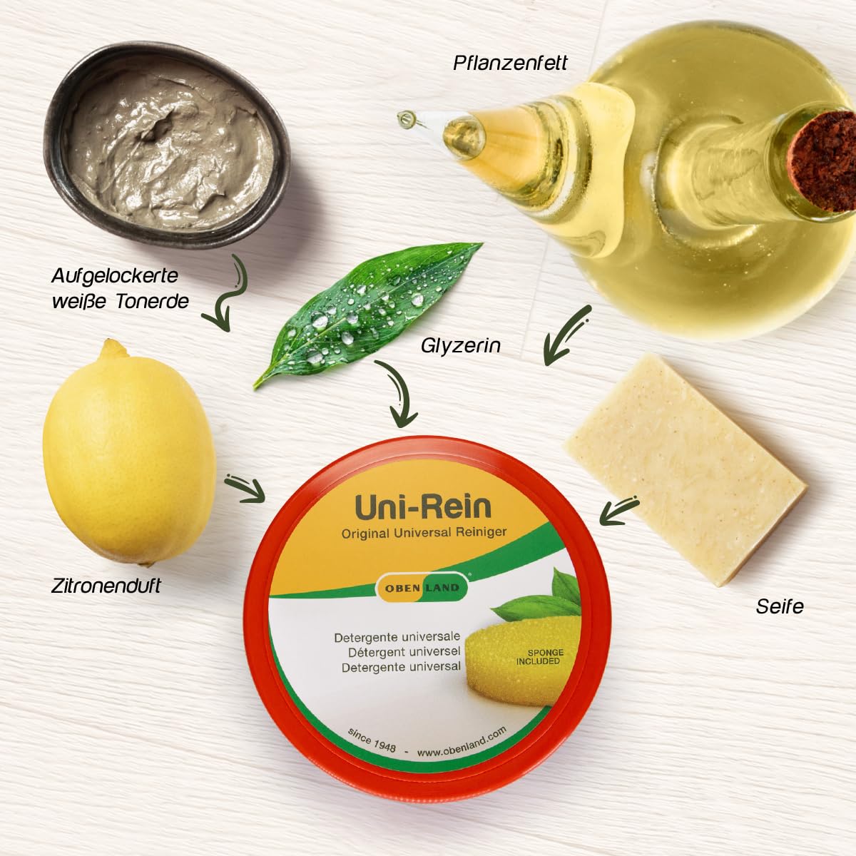 Obenland Uni-Rein öko Putzstein mit Schwämmen Vielseitiger Universalreiniger für, Küche, Bad, WC, Armaturen Fenster, Sneaker, Ceranfeld, 300 g
