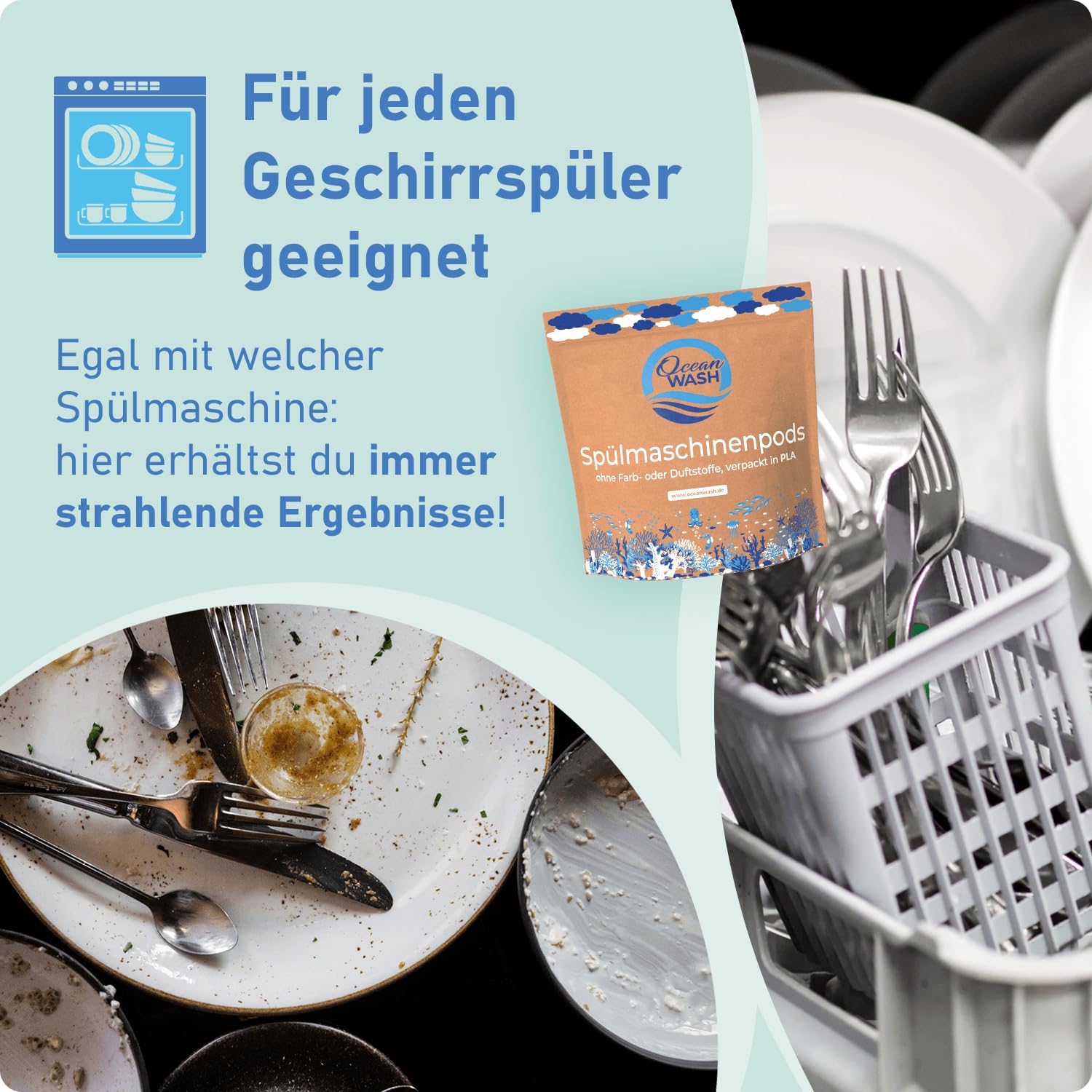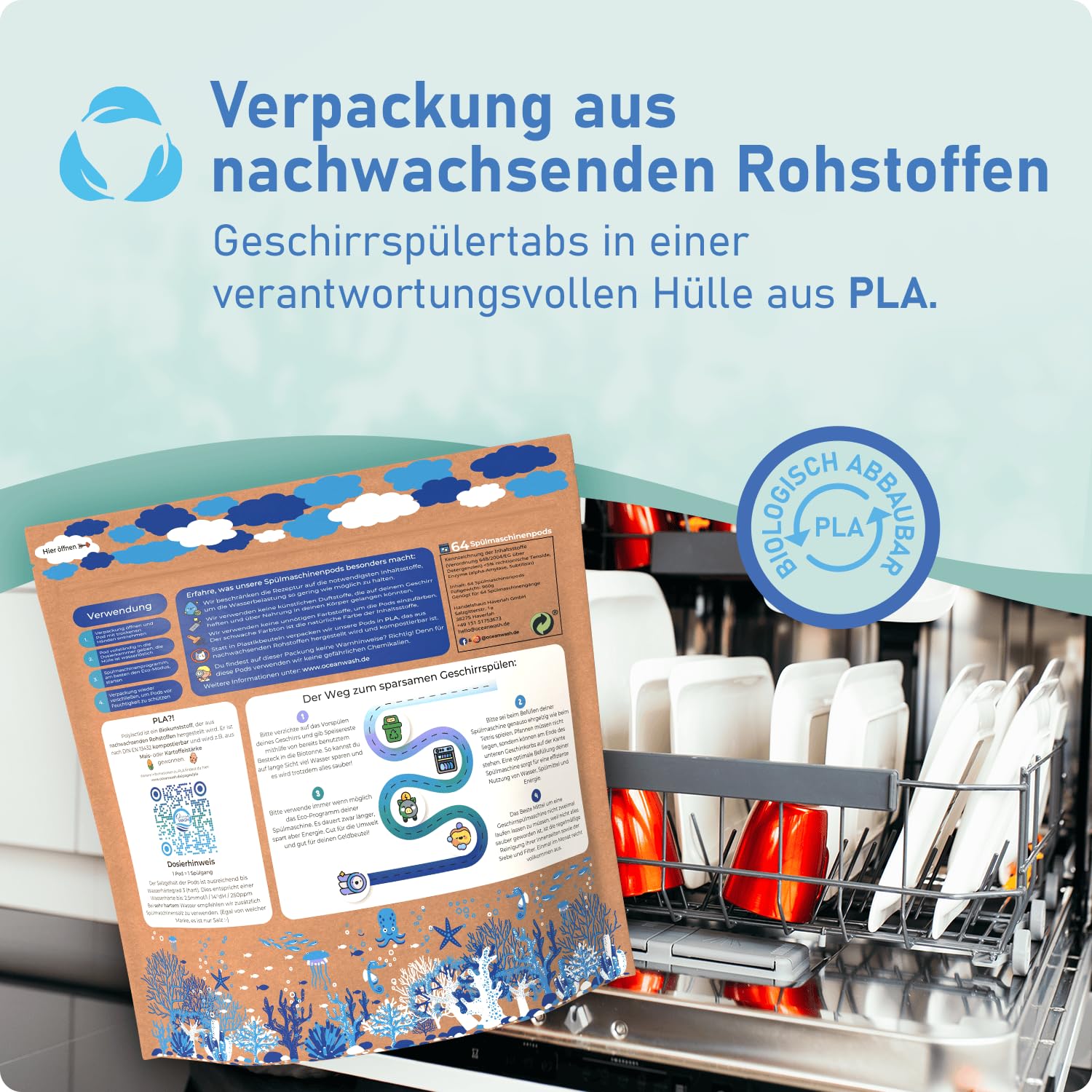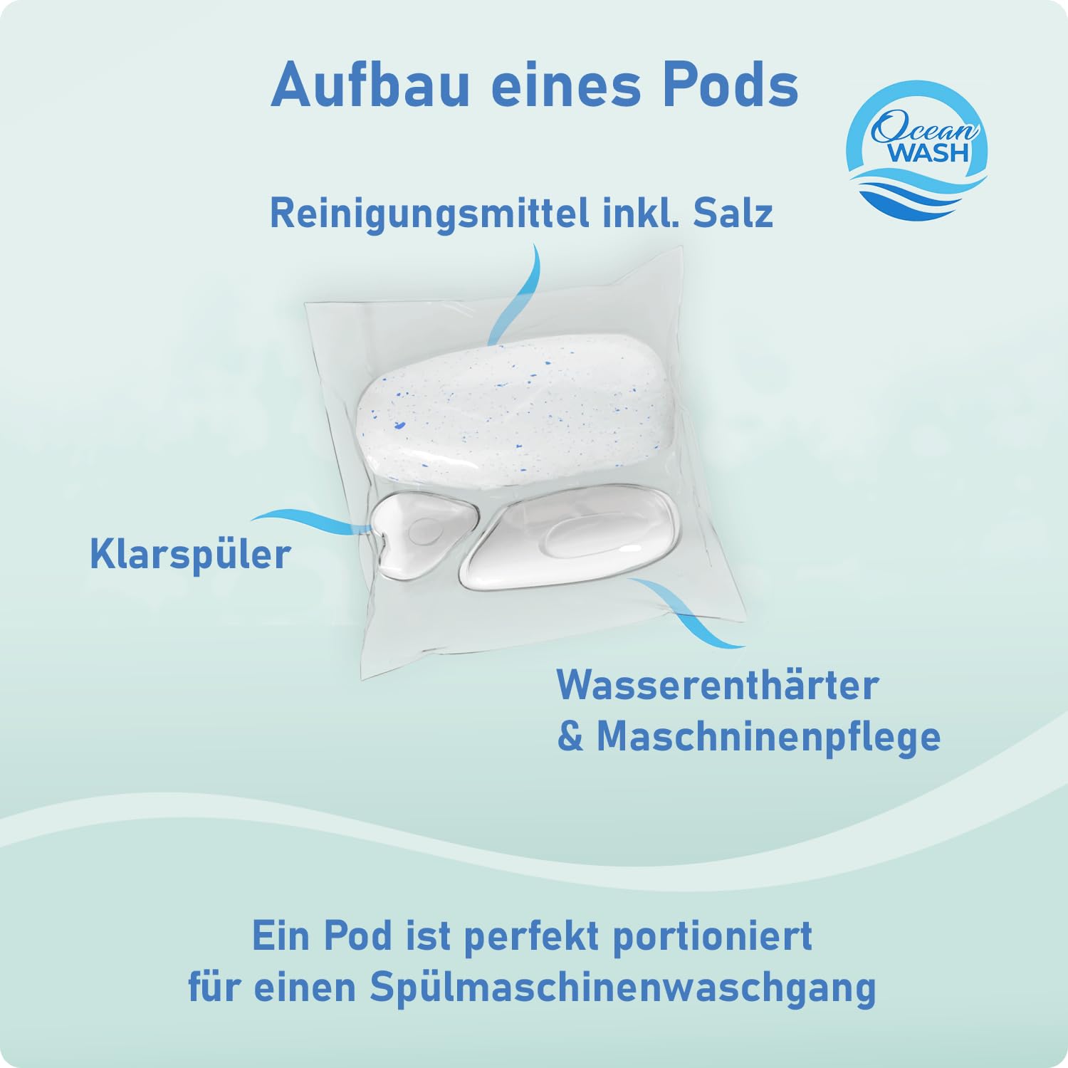 OceanWash Spülmaschinenpods ohne Plastik, Farb- und Duftstoffe, biologisch abbaubare Geschirr-Spültabs ohne Parfum, vegane Tabs für Geschirrspüler, verpackt in PLA