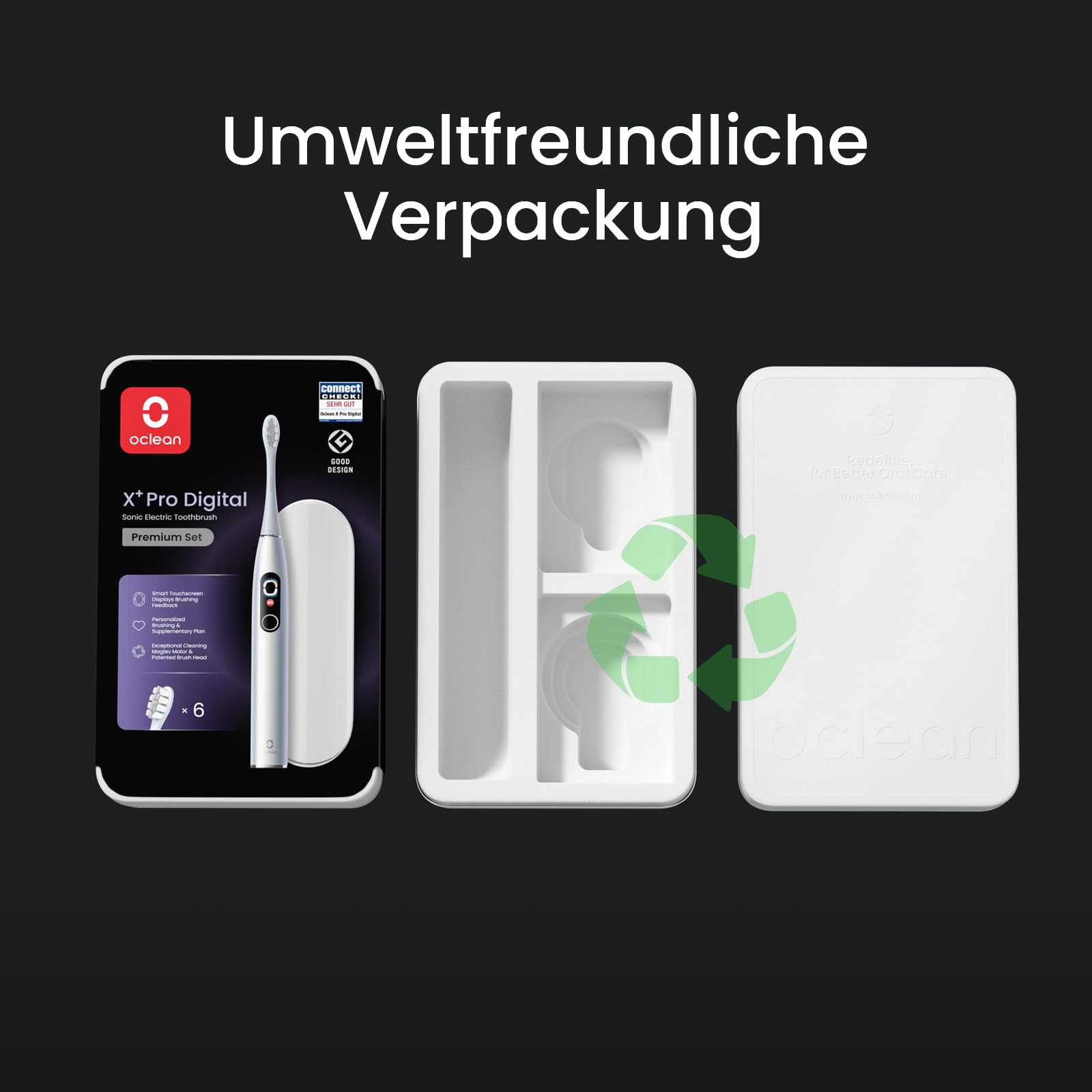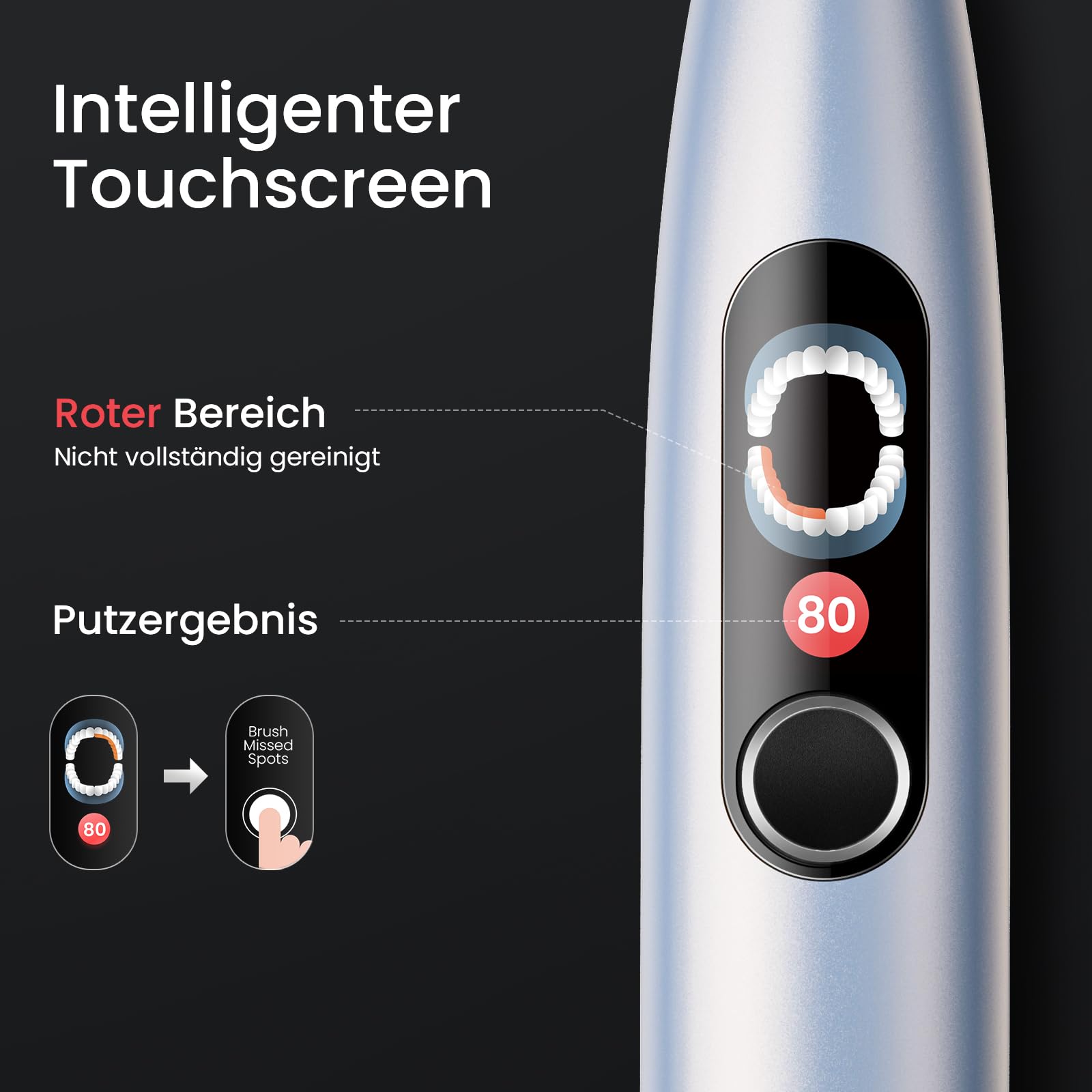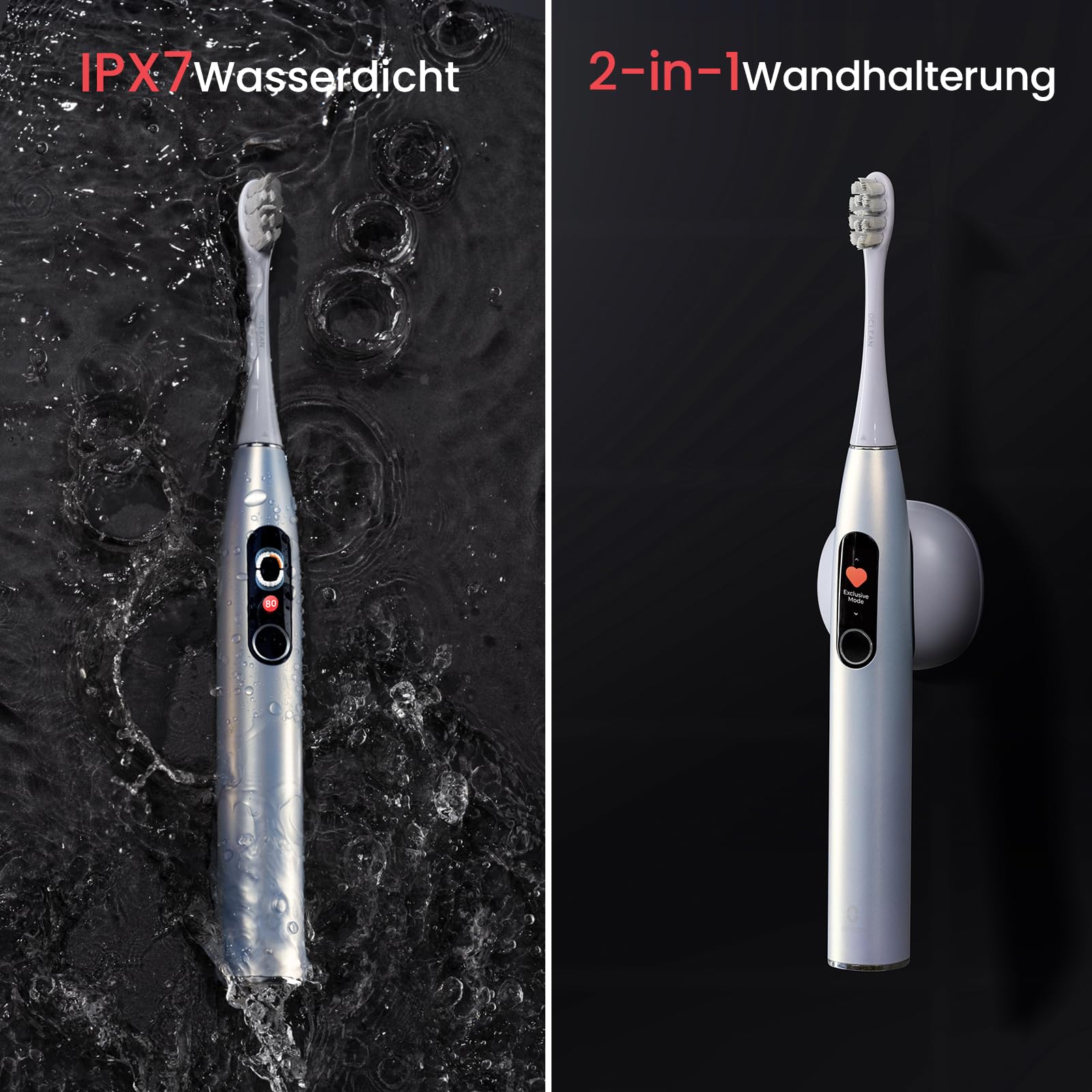 Oclean Schallzahnbürste X Series Pro Digital Travel Set mit Touch-Display, 6 Bürstenköpfe mit Reiseetui & Timer, 3 Modi Elektrische Zahnbürste, Electric Toothbrush mit 30 Tage Akkulaufzeit, Perlsilber