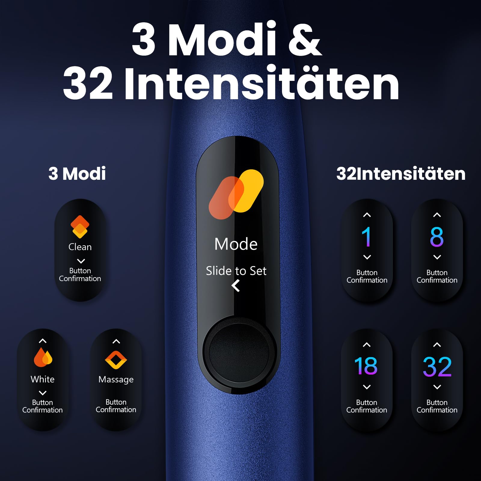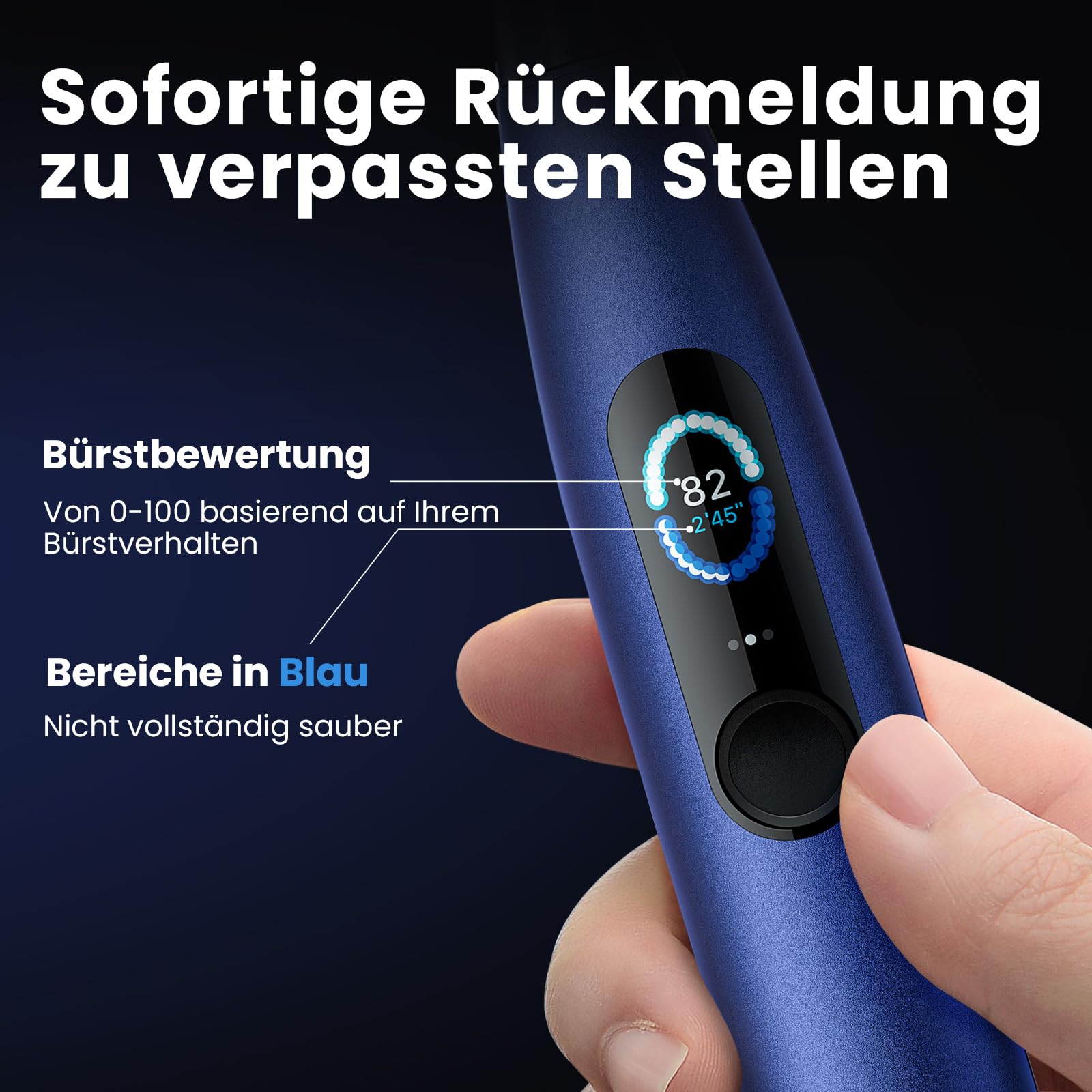 Oclean X Pro Elektrische Zahnbürste, Schallzahnbürste mit Farbdisplay, 3 Putzmodi & 32 Intensitäten, 30 Tage Akkulaufzeit, mit Timer, Drucksensor & APP, Blau