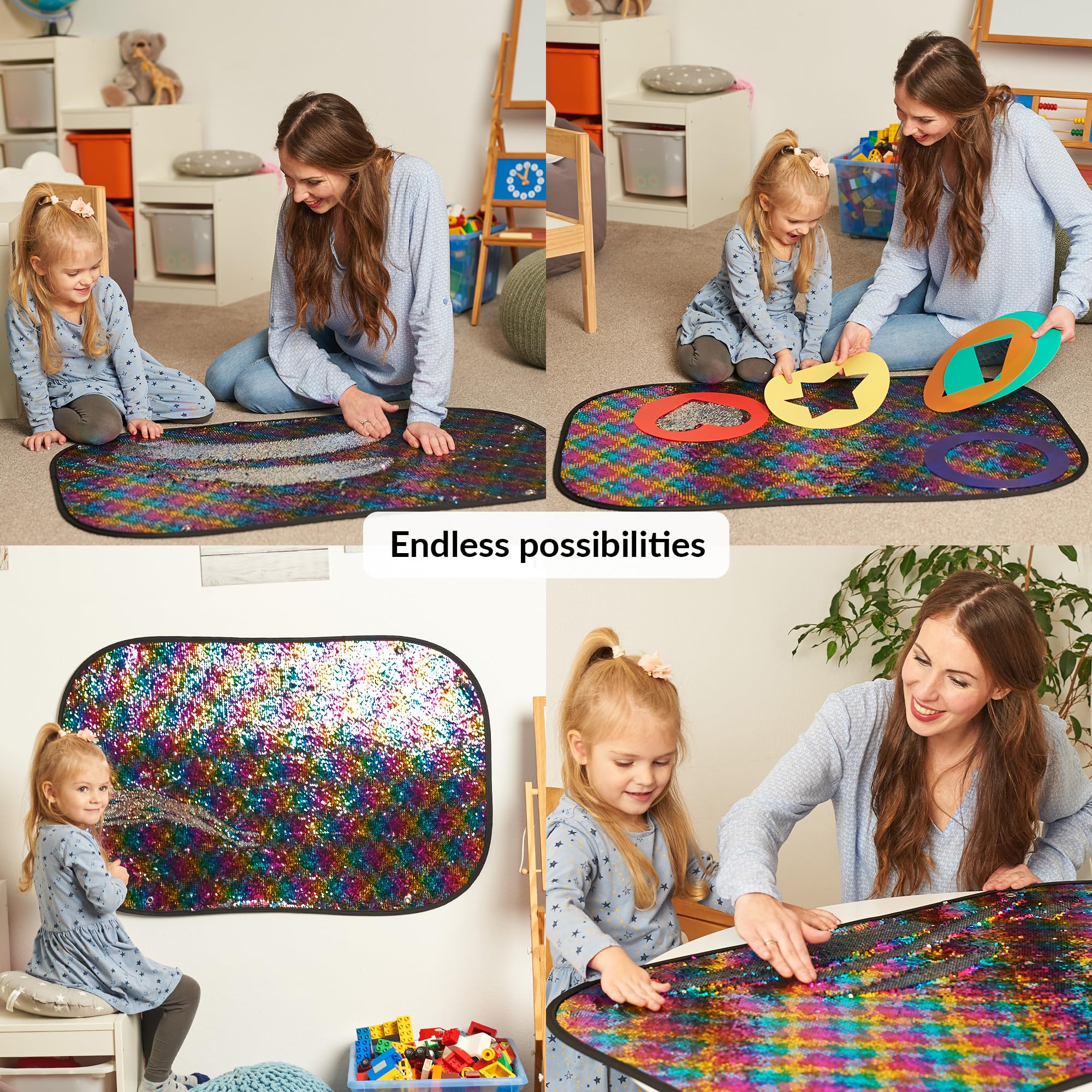 ODOXIA Autismus und Anti Stress Sensorik Spielzeug für Kinder mit Autismus und ADHS – das Sequin Fabric Sensory Board mit umklappbaren Pailletten für Autisten | Sensory Wall Matte aus Pailettenstoff
