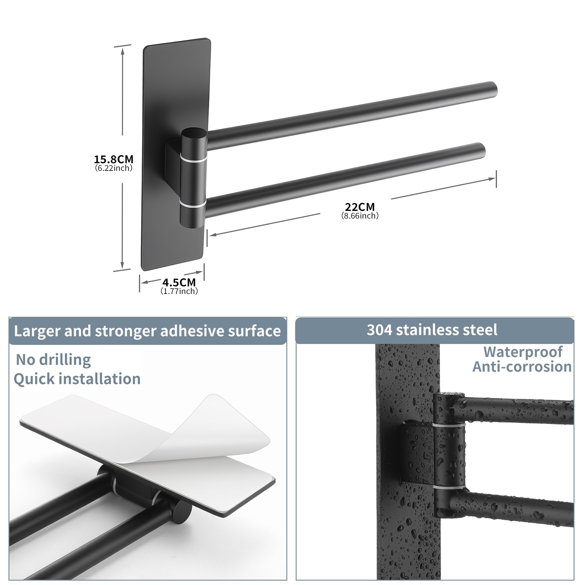 OETAMS Handtuchhalter Ohne Bohren Schwarz 180° Schwenkbar 22CM Handtuchstange Selbstklebend Handtuchhalter 304 Edelstahl Badetuchhalter Doppelter Habdtuchhalterung