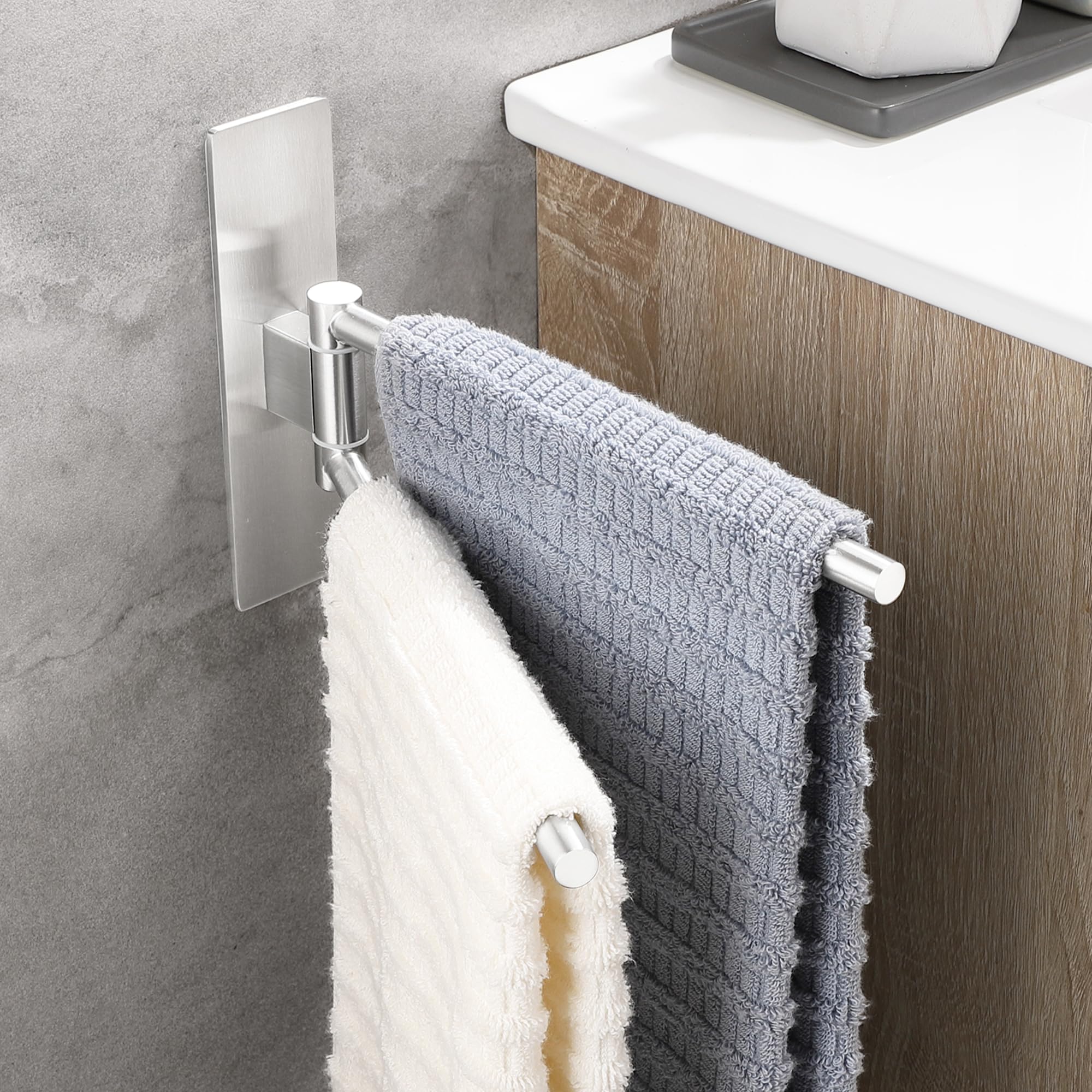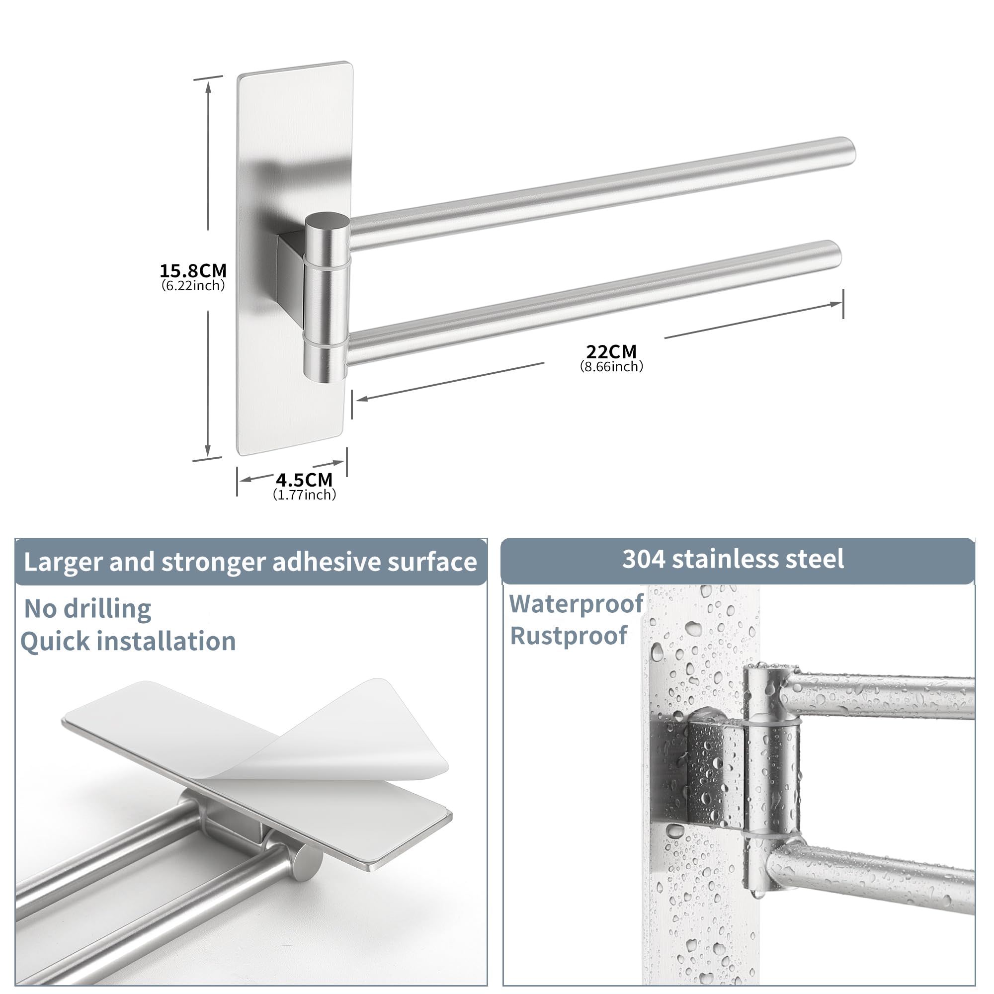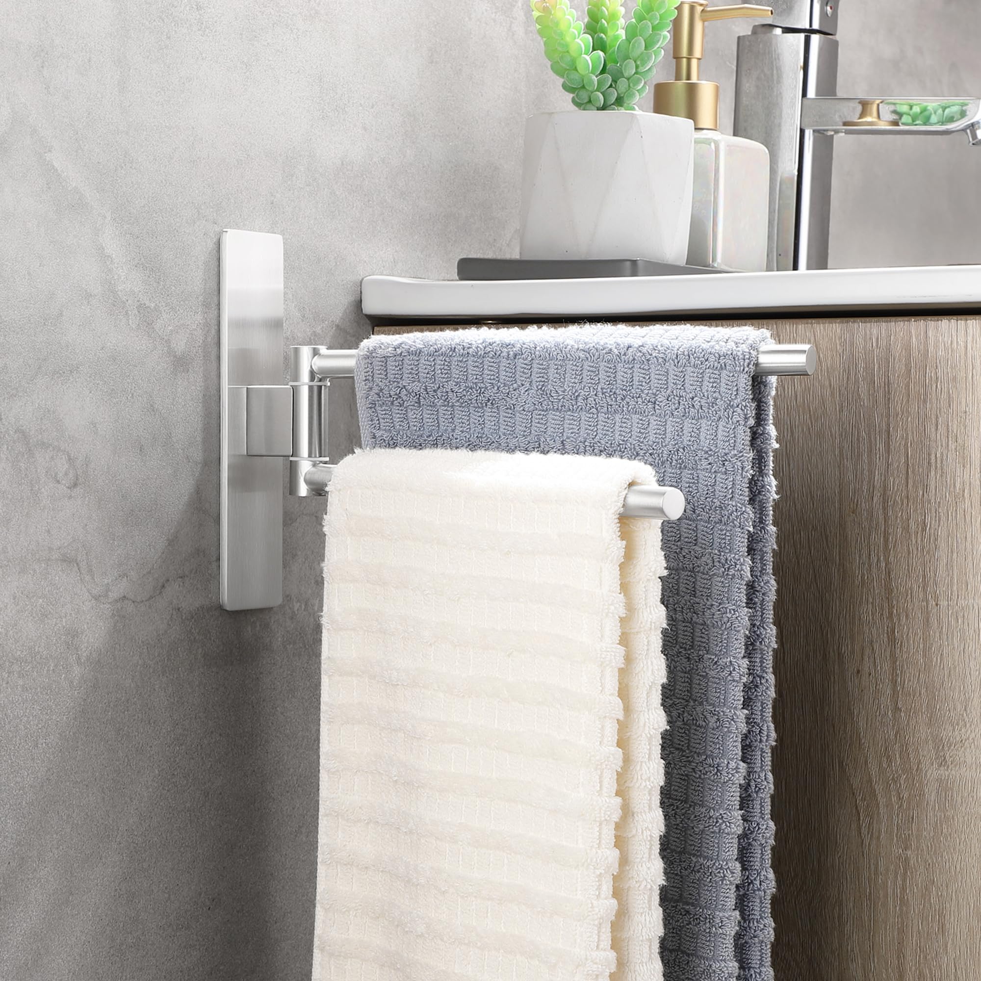 - Neues Upgrade: Selbstklebender Handtuchhalter kann um 180° gedreht werden, Doppelstab-Design, kann zwei Handtücher gleichzeitig hängen, flexibel zu verwenden. Erhöhen Sie die Haftfläche des Handtuchstange, stabiler, effektiv reduzieren das Risiko des Herunterfallens