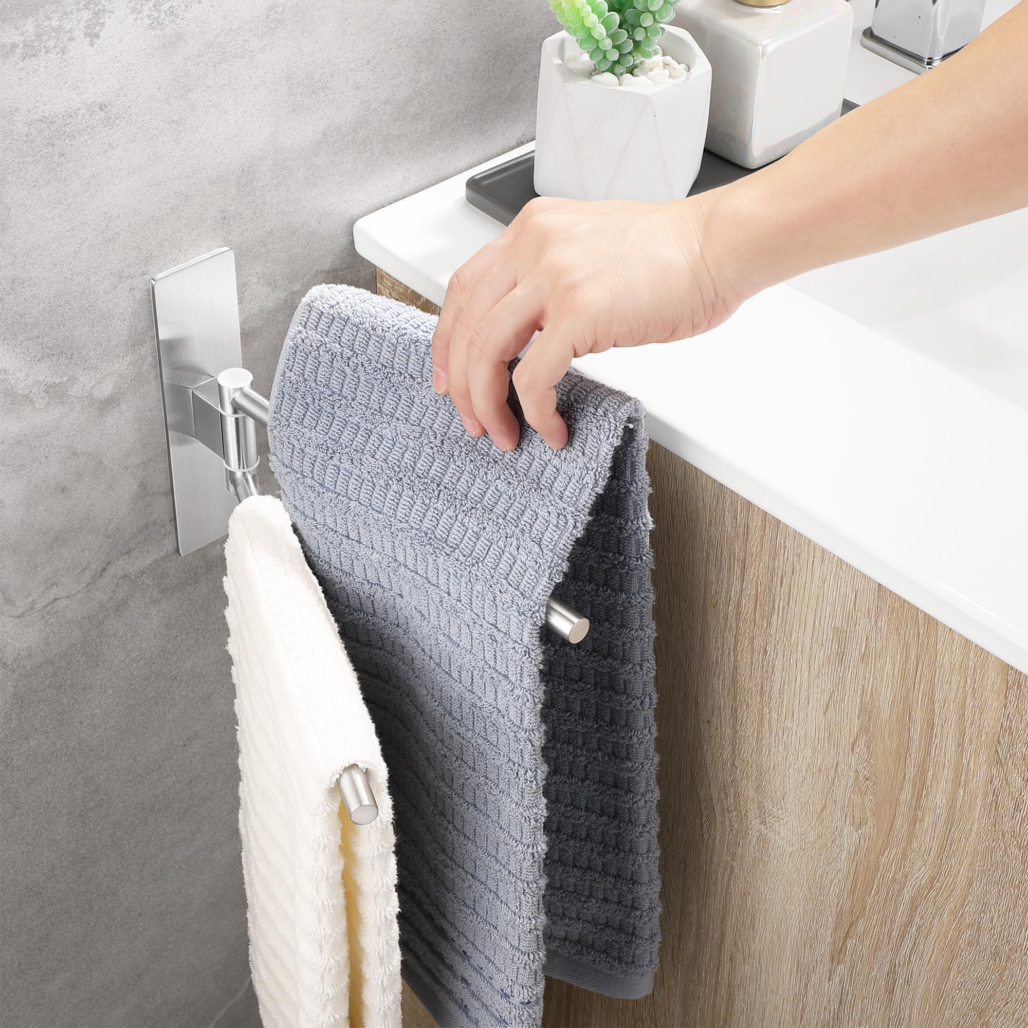 - Schnelle Montage ohne Bohren: Ziehen Sie einfach die Schutzfolie der Handtuchhalter-Grundplatte ab, kleben Sie sie auf die glatte Wand und drücken Sie sie ein paar Sekunden lang, um sie an der Wand zu befestigen. Wird die Wand nicht beschädigen, perfekt für Bäder und Küchen, die nicht gebohrt werden können